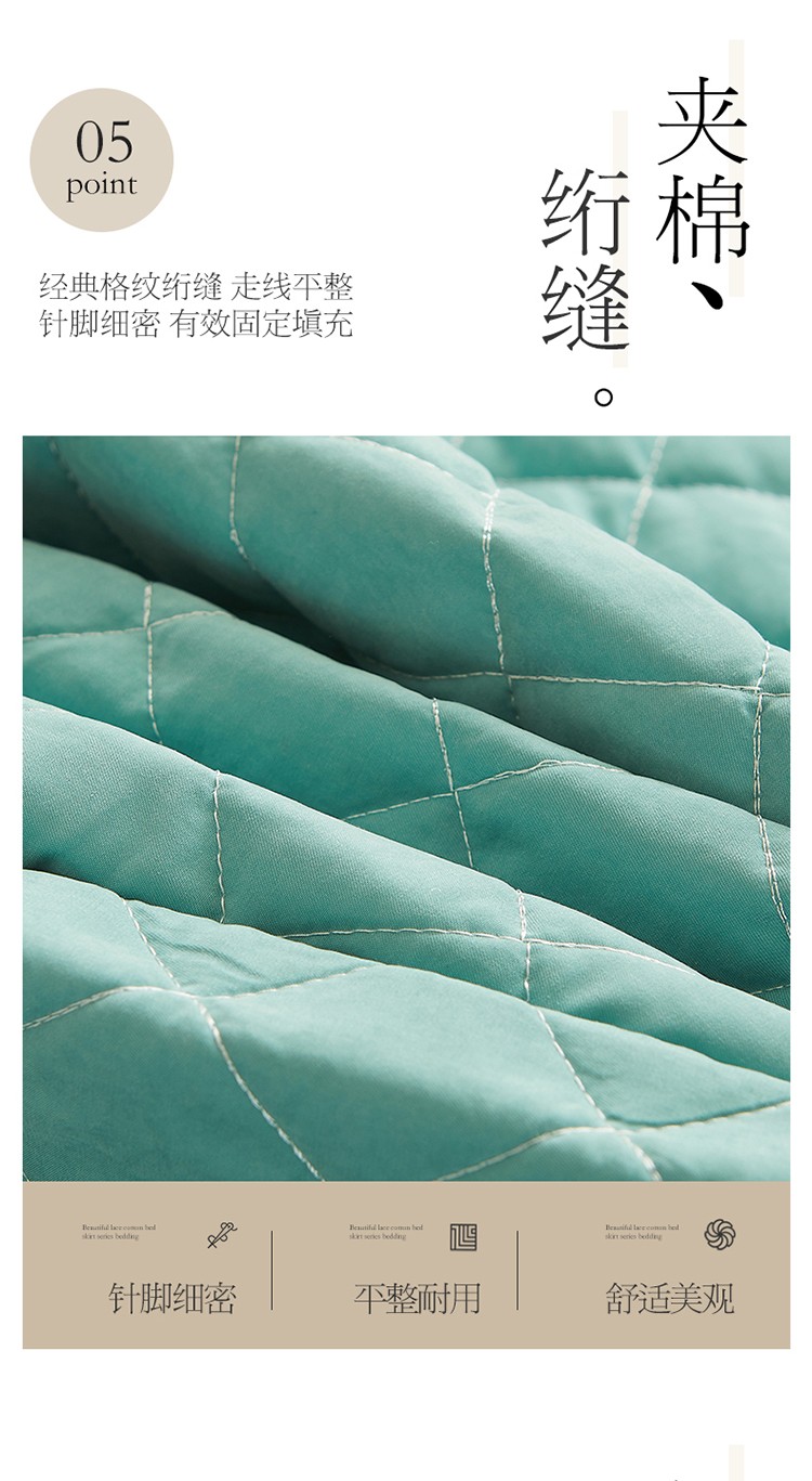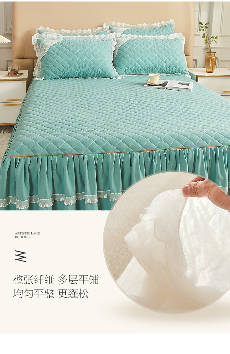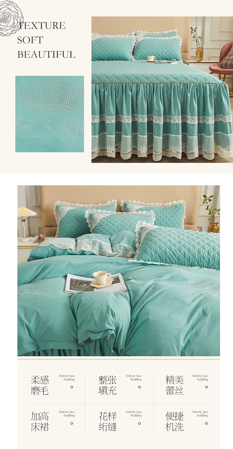 商品名称:网红馆 2025新款唯美蕾丝夹棉床裙四件套婉约佳人 青绿色