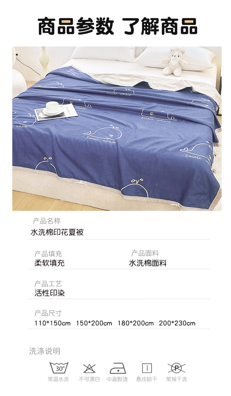商品名称:友承家纺 2025新款舒适印花水洗棉夏被 鲸鱼