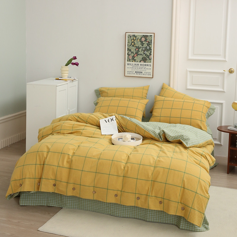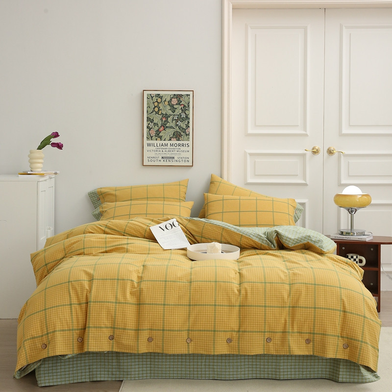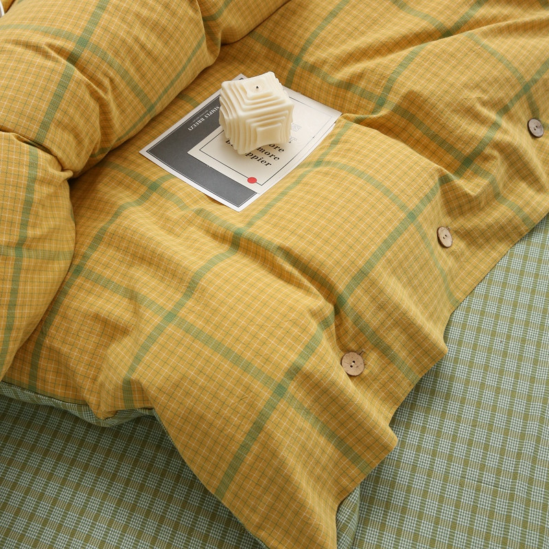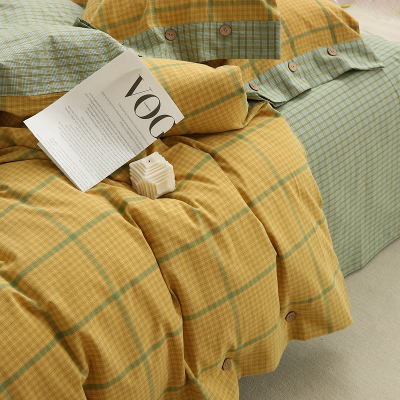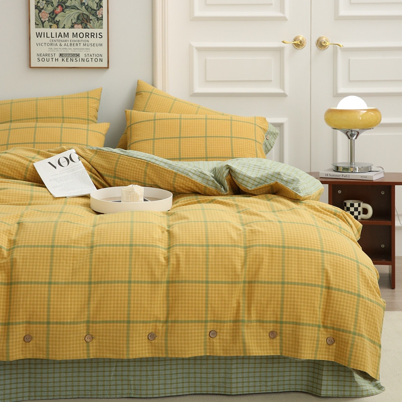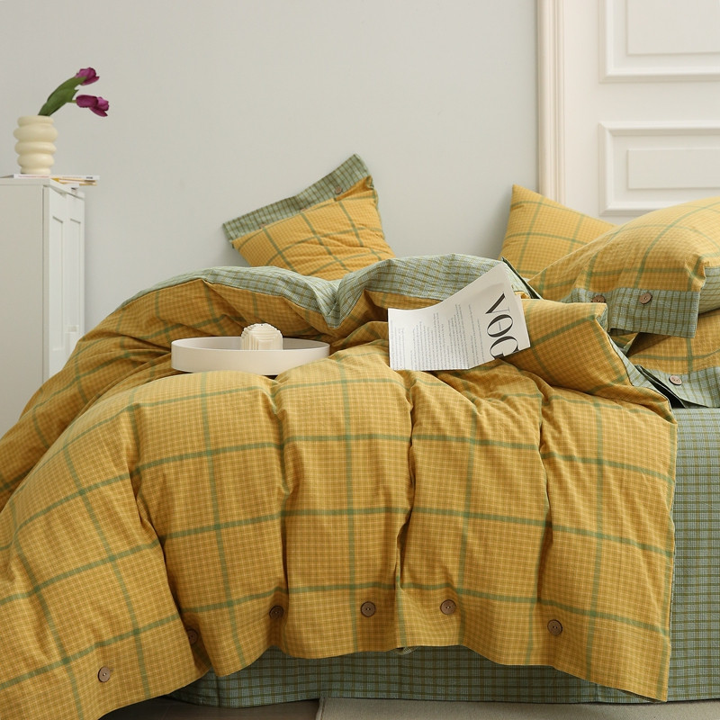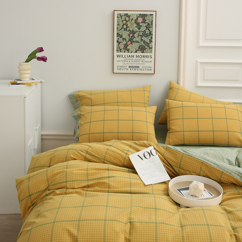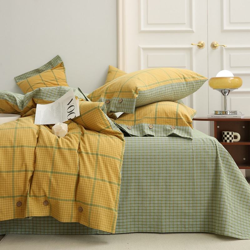 榻尚经典田园格子全棉色织水洗棉四件套 安柠(柠檬)