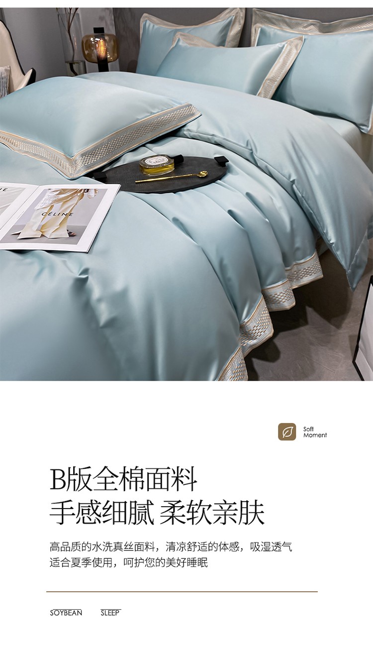 商品名称:欧乐蒂 2022新款A版水洗真丝B版全棉四件套-简爱 简爱-梵星蓝
