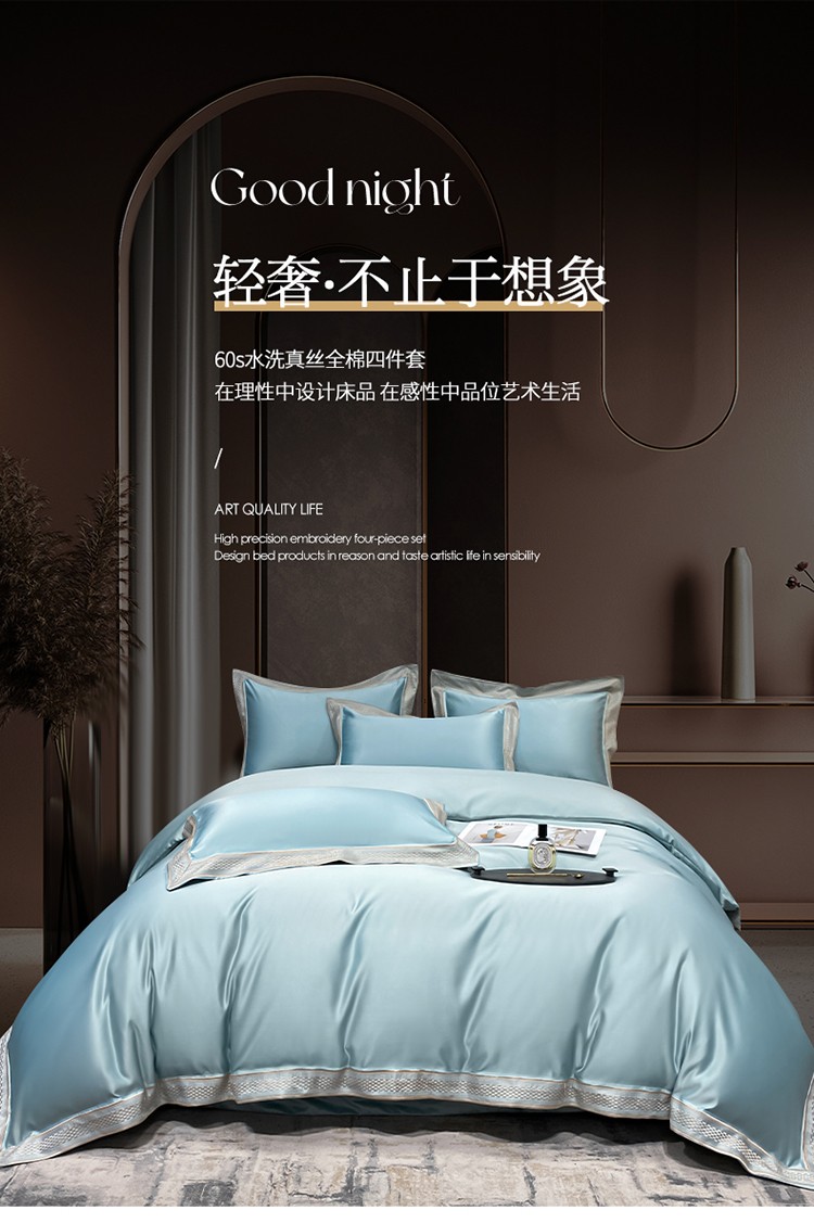 (总)欧乐蒂 2025新款欧式水洗贡缎全棉刺绣四件套-欧雅终版,宾利蓝,玉色,白色,粉色,豆沙,酒红,香槟,高级灰