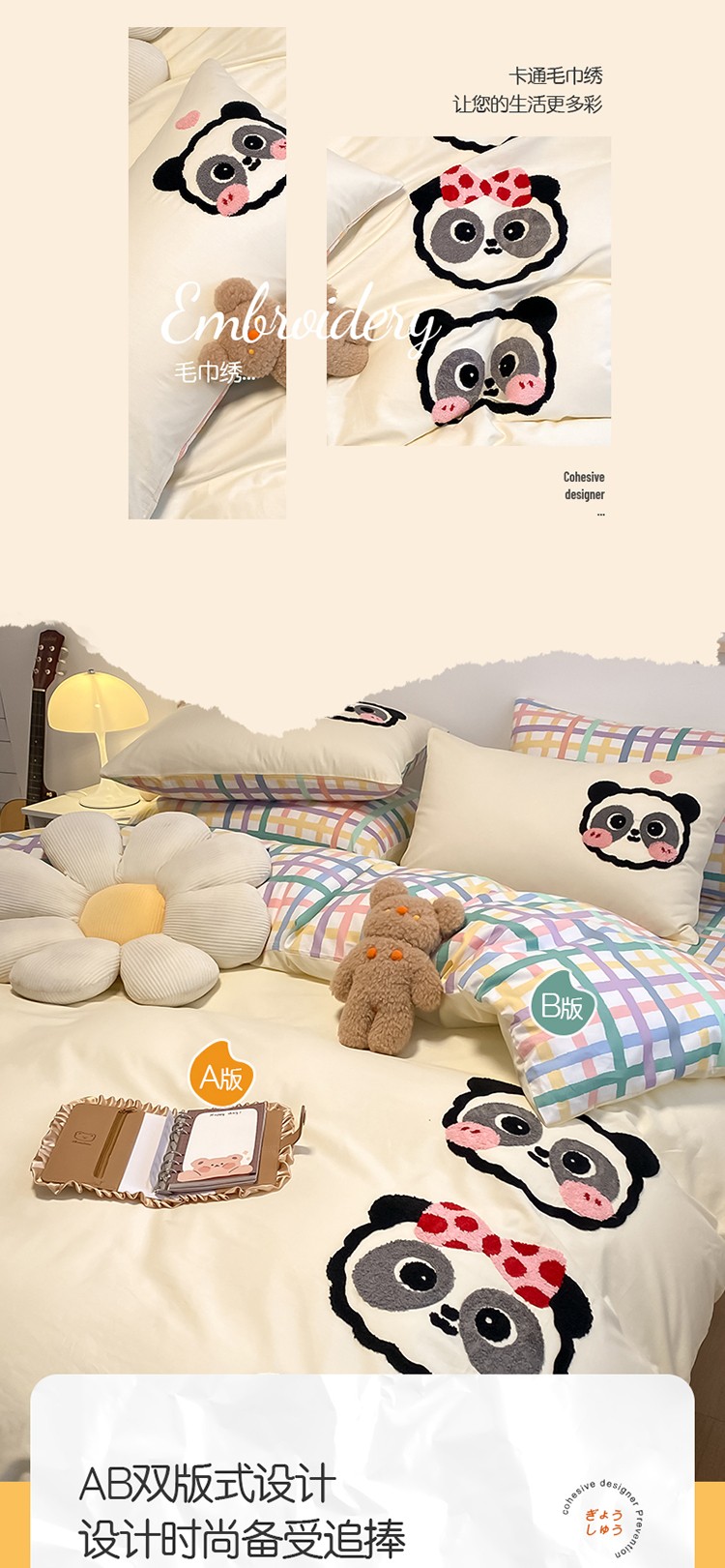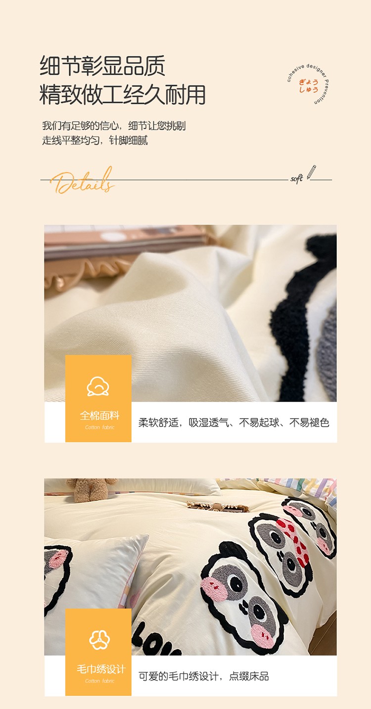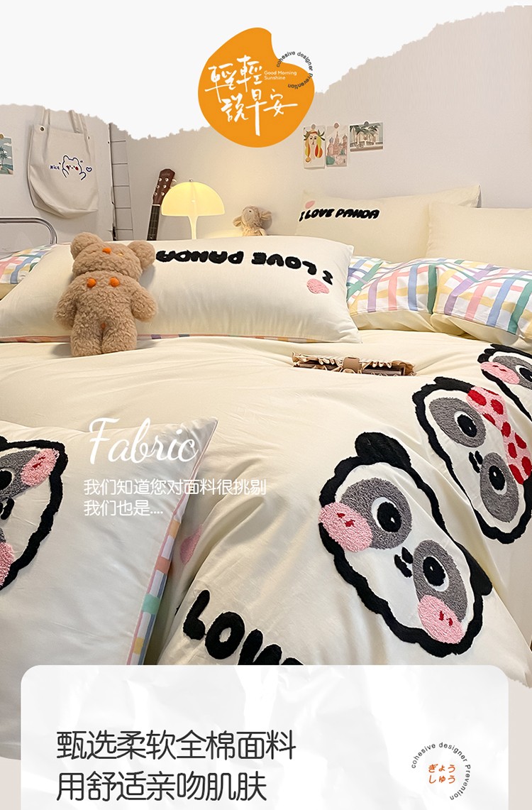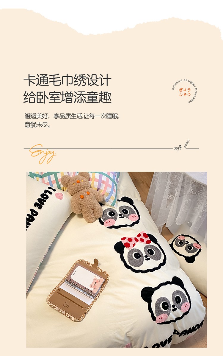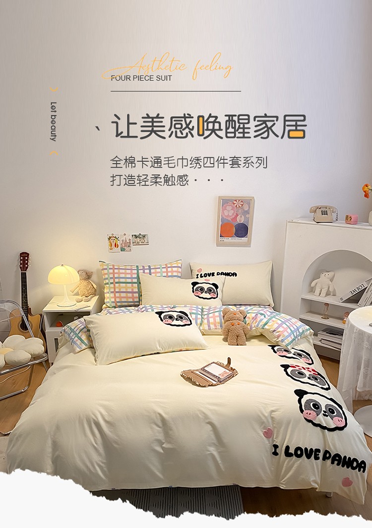 当前位置: 91家纺网 > 商品网购 > 床品套件 > 四件套 > 全棉普通四件套 > 澳梵 2022新款全棉大版卡通毛巾绣绣花四件套 熊猫之家