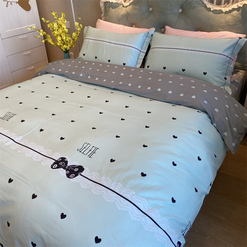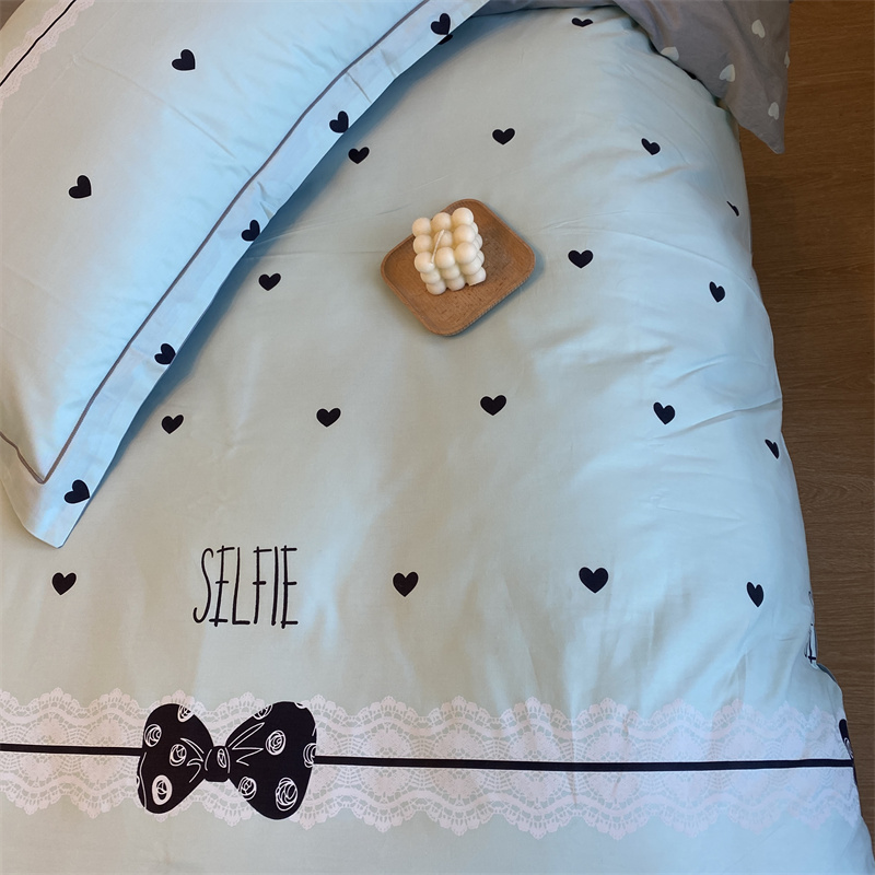 商品名称:棉生活 2021新款全棉铂金棉小资系列四件套 叠心恋蓝
