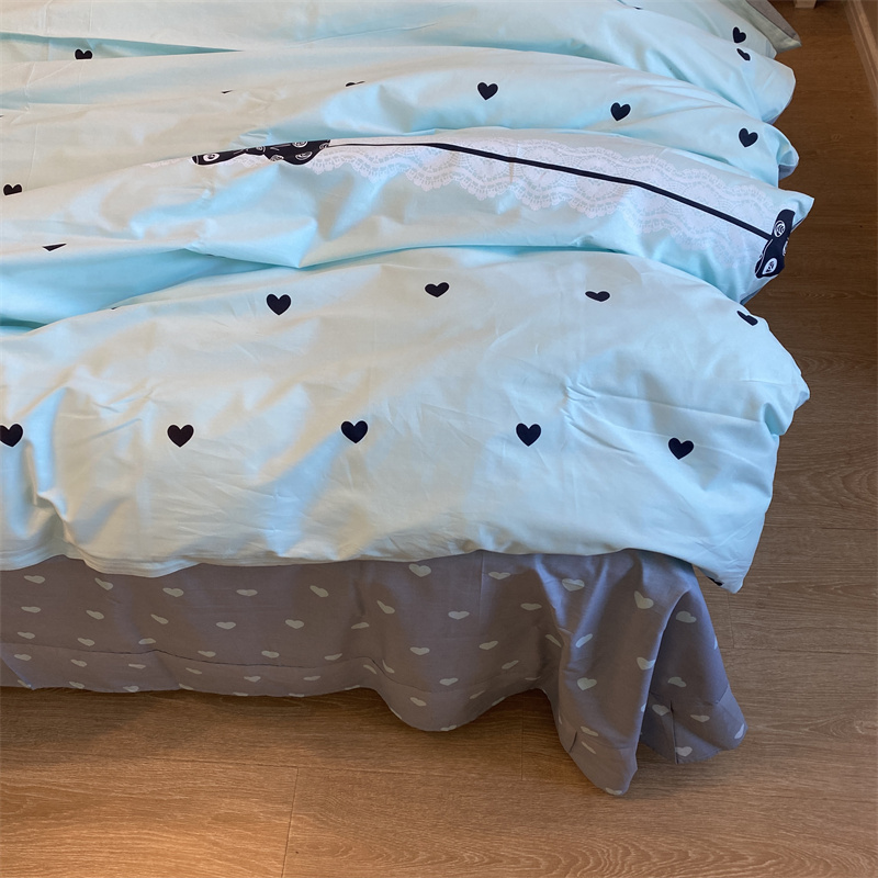 棉生活 2021新款全棉铂金棉小资系列四件套 叠心恋蓝
