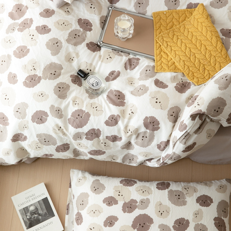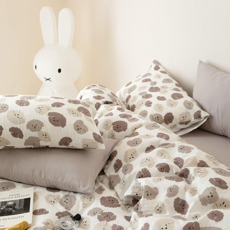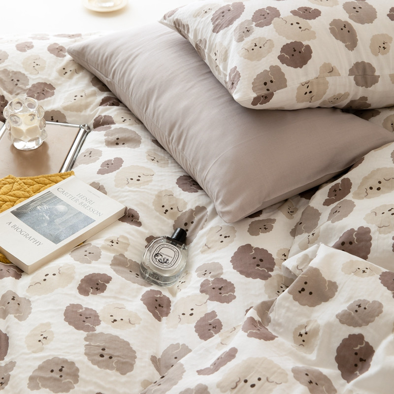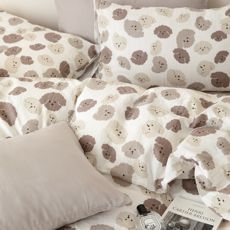 当前位置: 91家纺网 > 商品网购 > 床品套件 > 四件套 > 全棉普通四件套 > 8小时家纺 2022新款全棉双层纱四件套 萌萌狗