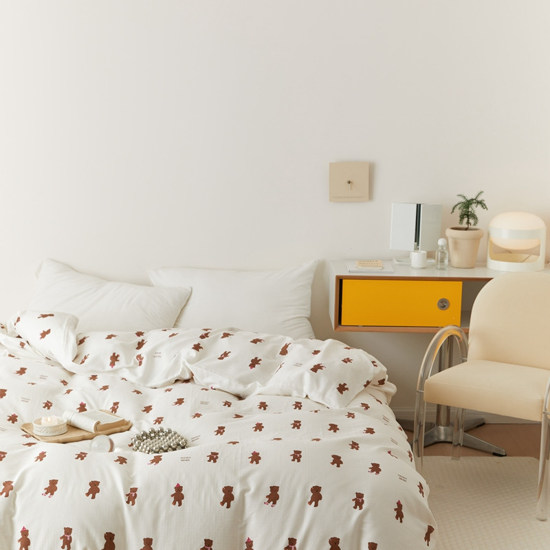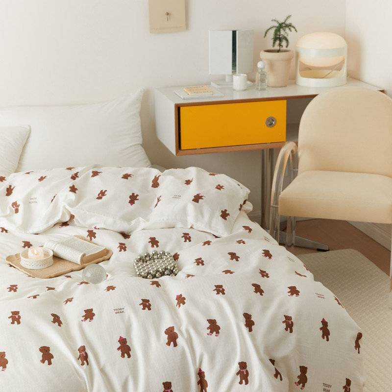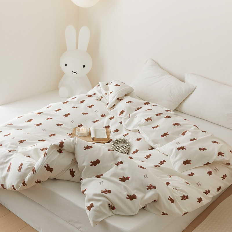 8小时家纺 2022新款全棉双层纱单被套 围巾熊
