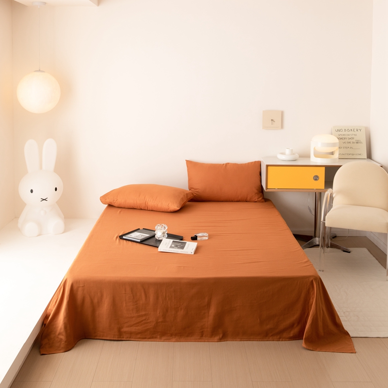 8小时家纺 2022新款全棉双层纱单品床单 焦糖色