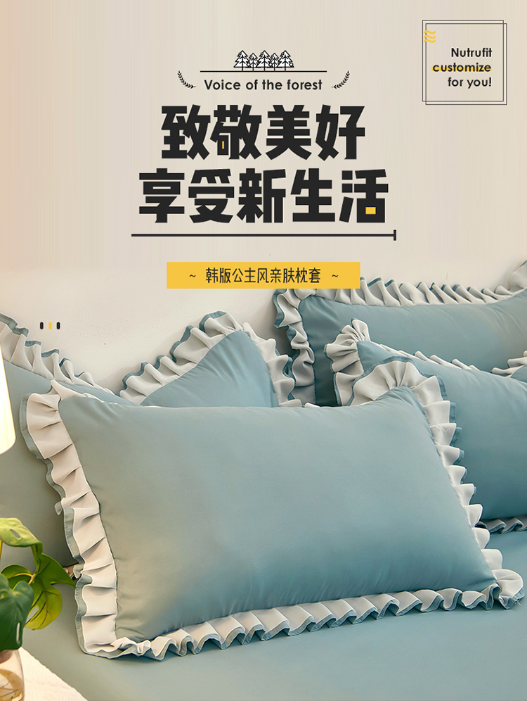 商品名称:莉莉安 2025新款韩版公主风亲肤单枕套-爱恋 爱恋-柔光兰/对