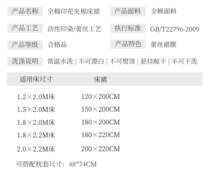 48*74cm夹棉枕套一对 | ¥28.00 |
