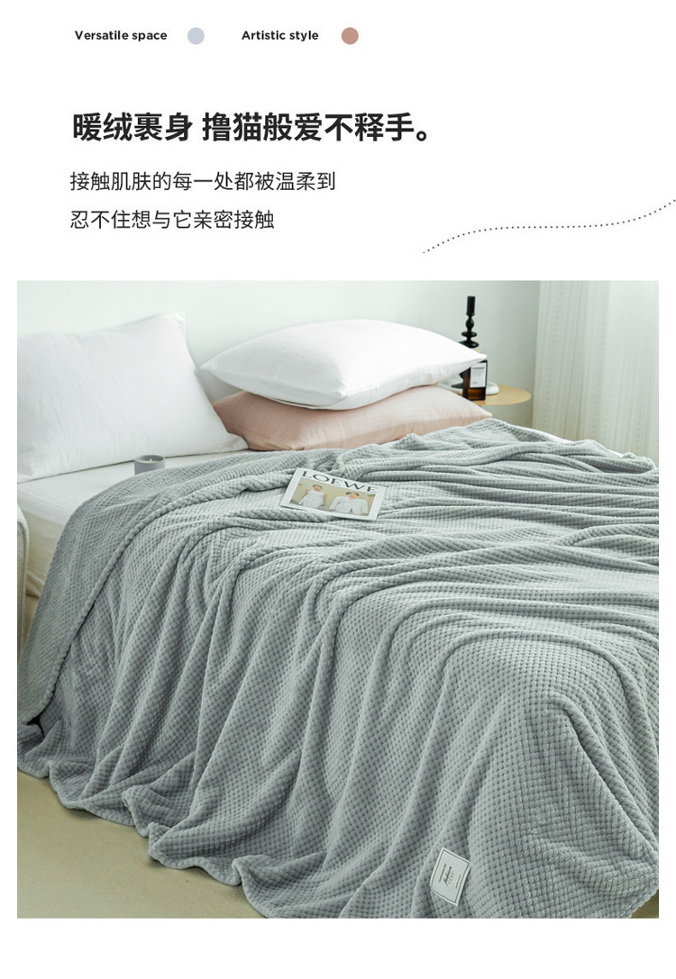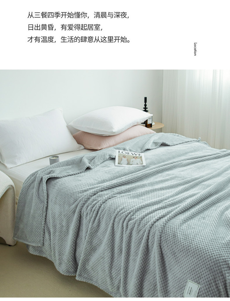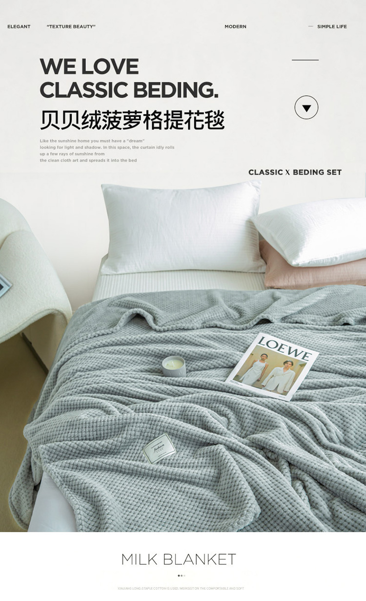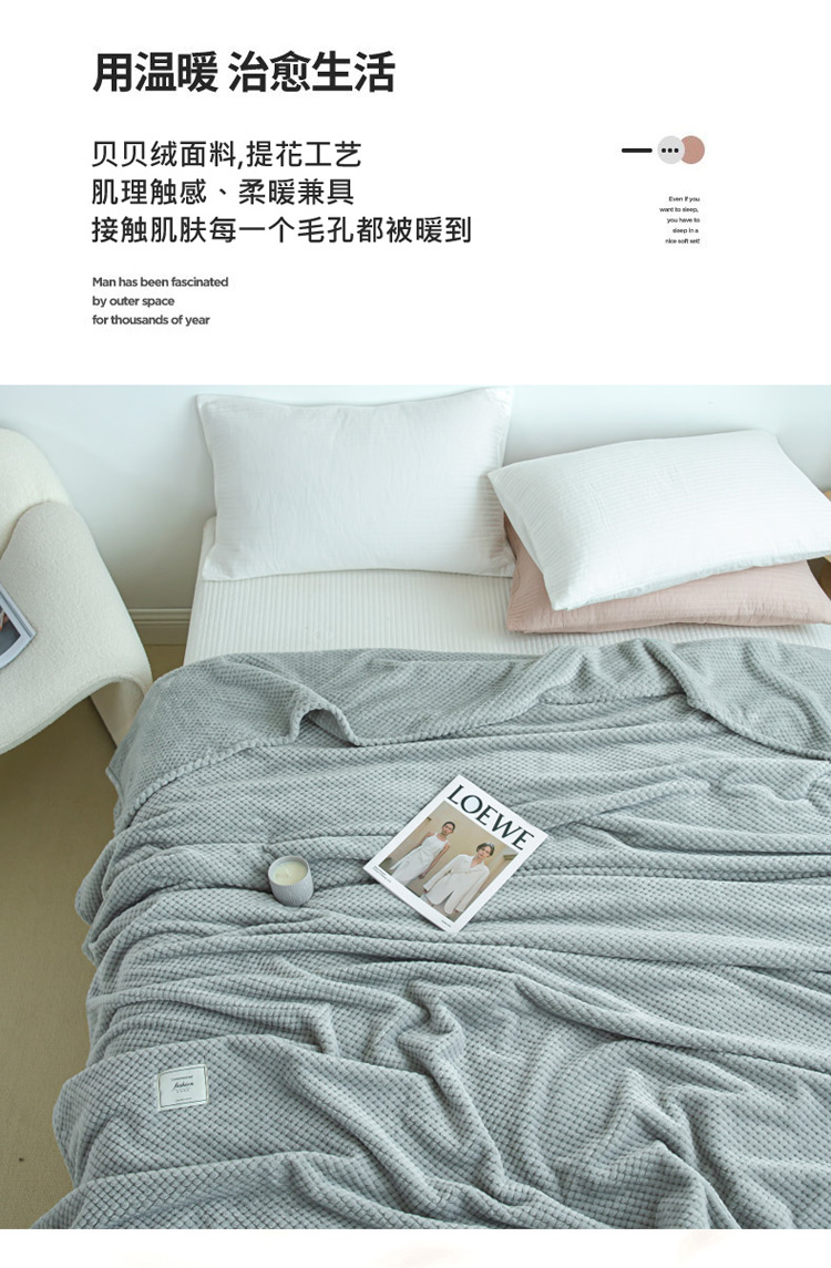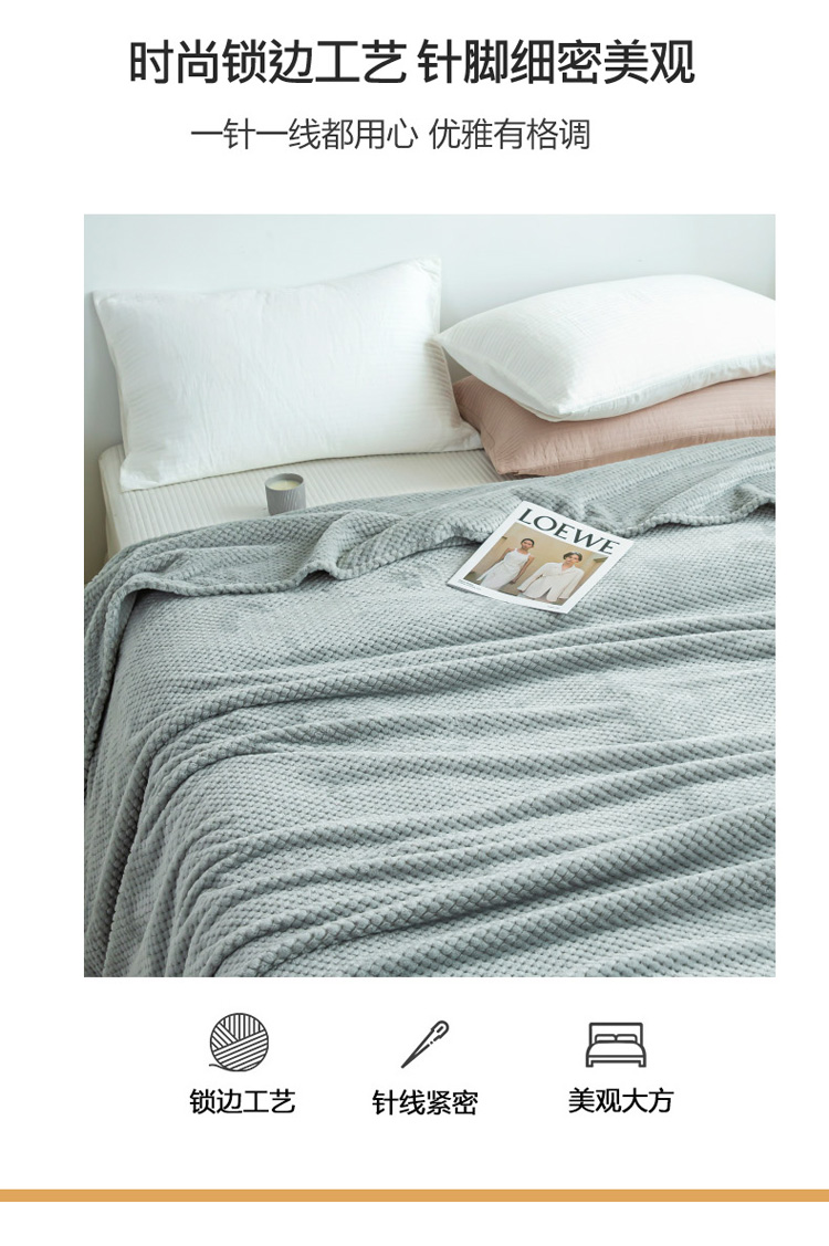 商品名称:羋多 2023年新款菠萝格提花毯子法莱绒云貂绒贴布毛毯 浅灰