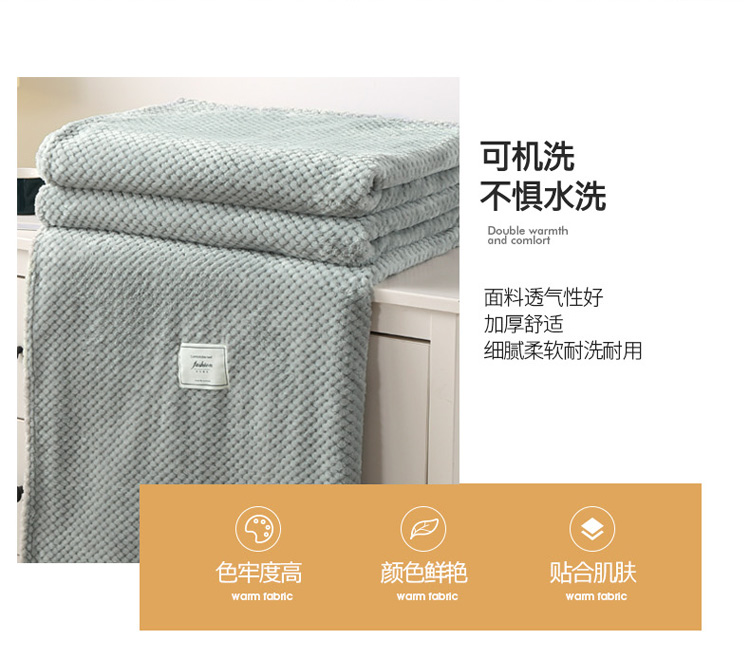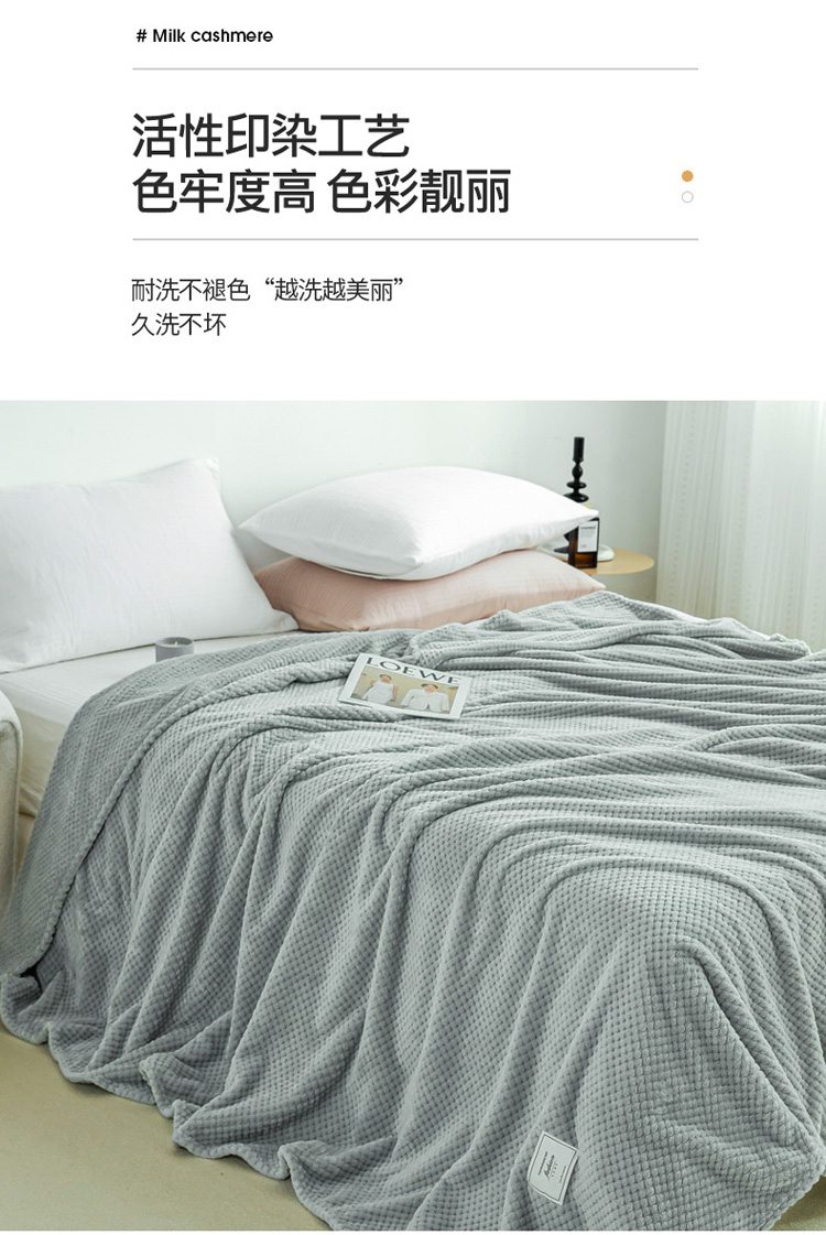(总)穆琪2025新款轻奢盖毯高克重多层提花绵柔绒保暖毛毯绵密亲肤沙发毯休闲小毯子,果绿,浅咖,秋波蓝,水晶紫,象牙白,陨石灰