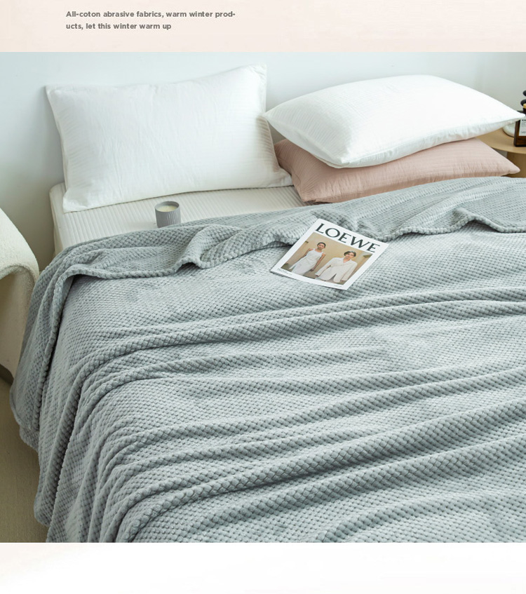 羋多 2023年新款菠萝格提花毯子法莱绒云貂绒贴布毛毯 浅灰
