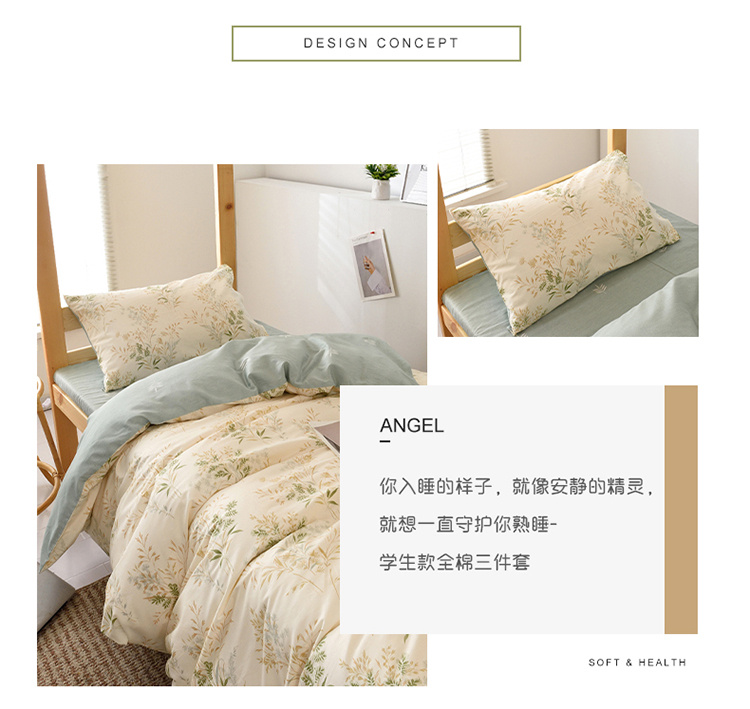 当前位置: 91家纺网 > 商品网购 > 床品套件 > 三件套 > 麦伦家居 2022新款全棉40支13372全棉学生三件套 仙草
