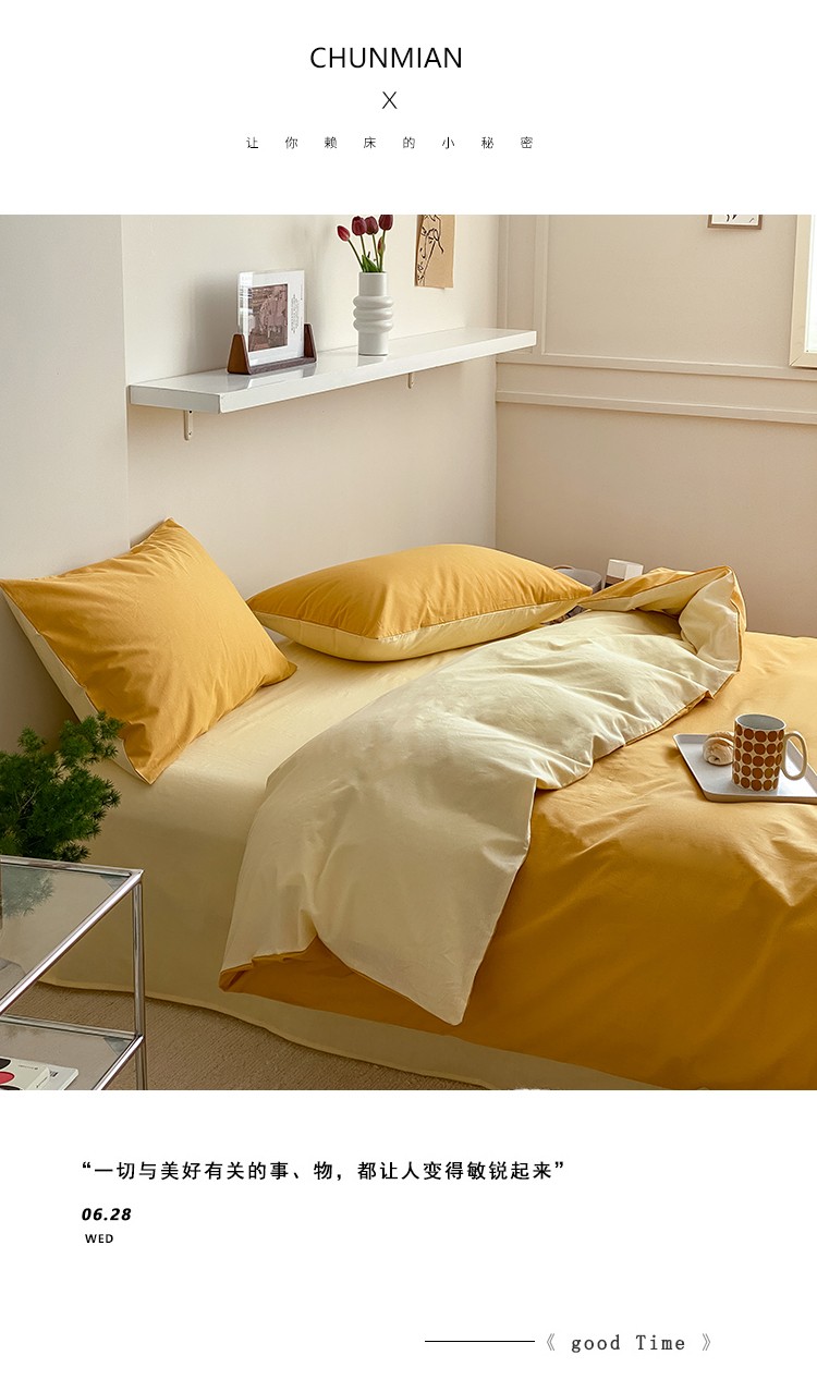 北欧风ins纯棉水洗棉床四件套全棉简约被套床单上三件套床笠,白色+藏青,藏青+浅蓝,鹅黄+螺旋藻绿,鹅黄+牛油果,螺旋藻绿+鹅黄,千夏紫+水貂灰,千夏紫+薇薇紫,薇薇紫+浅灰,浅蓝+鹅黄,浅蓝+白色,浅蓝+藏青