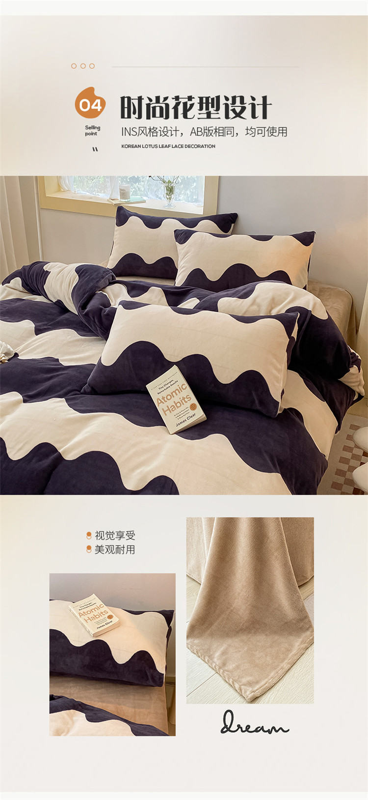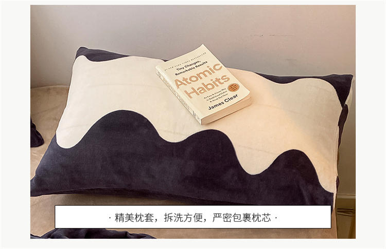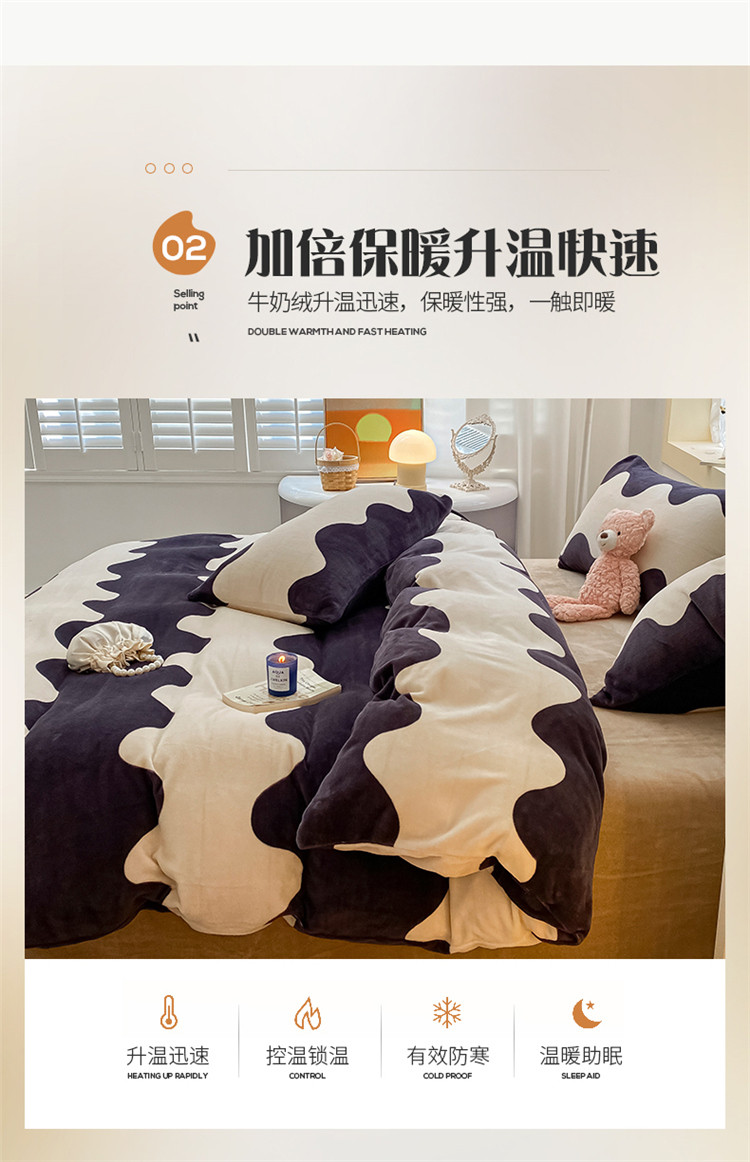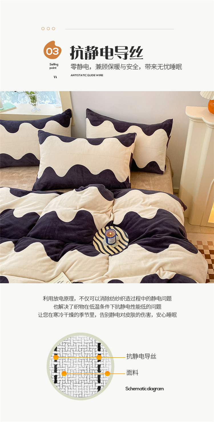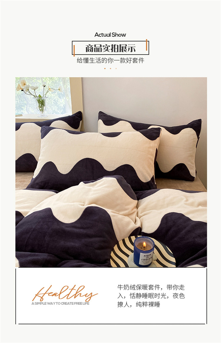商品名称:桃子家居2022新款ins波浪泡泡加厚牛奶绒系列四件套 深蓝波浪