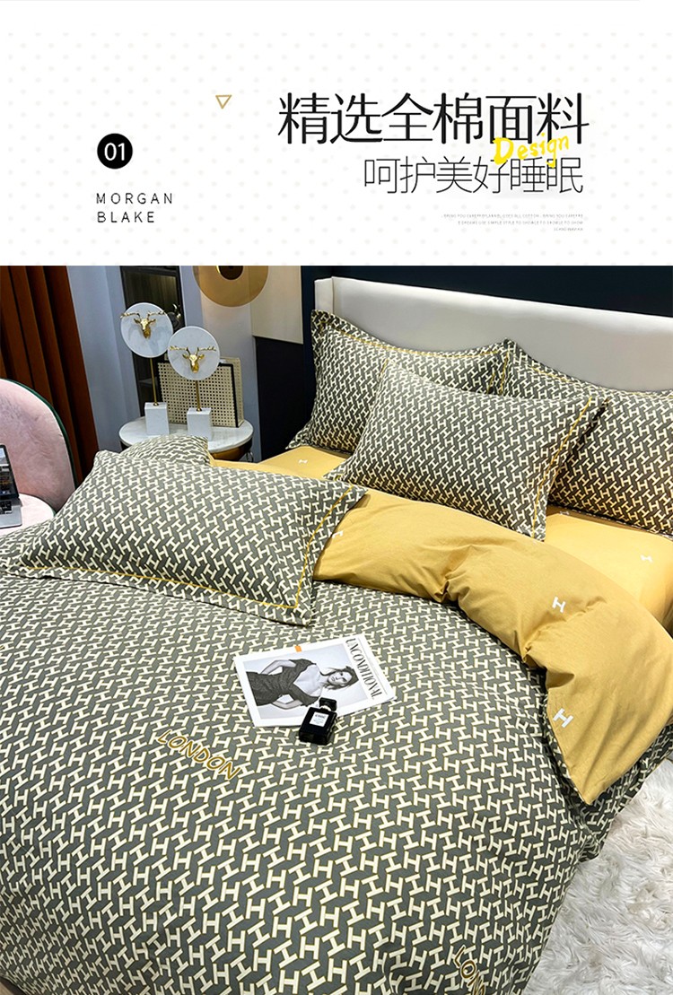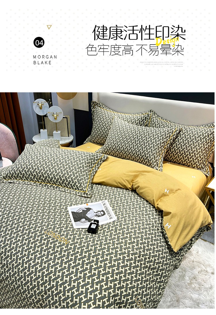 商品名称:雲归梦 2022年新款加厚全棉大版四件套第二批-格条卡通 卡尔玛-黄
