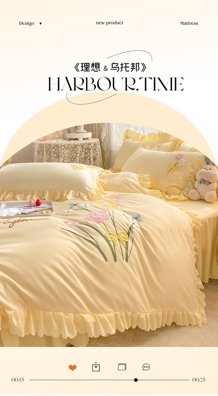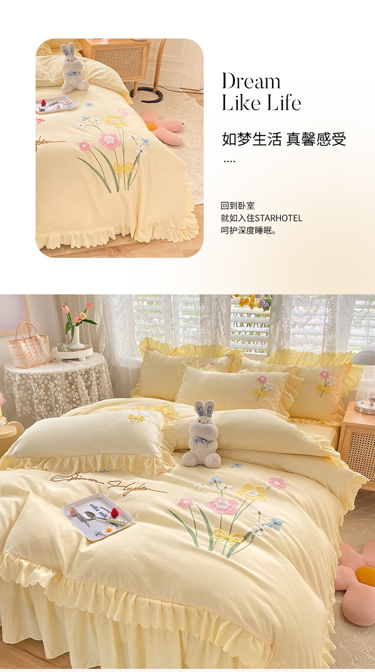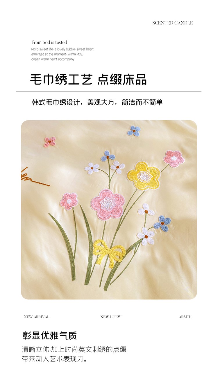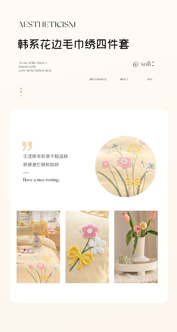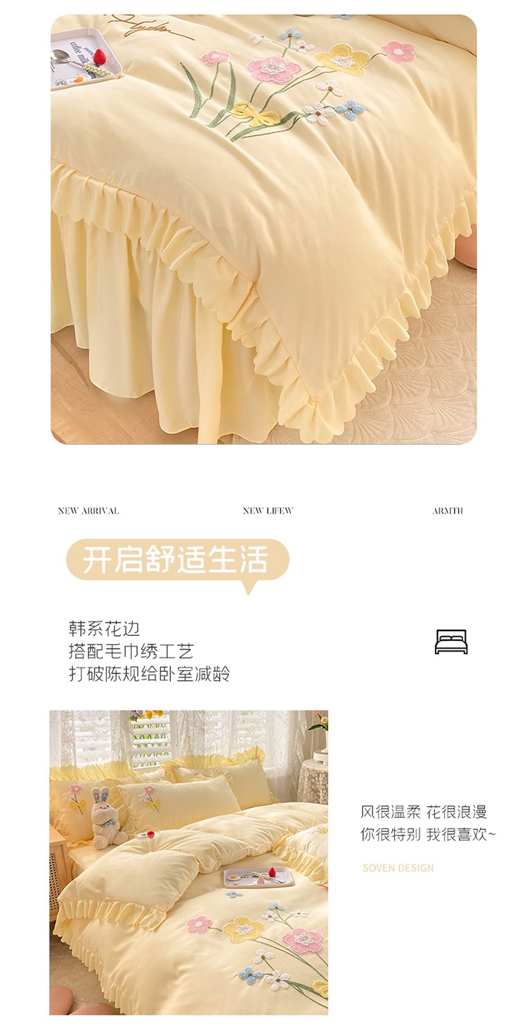 当前位置: 91家纺网 > 商品网购 > 床品套件 > 四件套 > 普通磨毛四件套 > 梦之岛2022新款韩版遇见系列毛巾绣四件套 遇见-奶黄