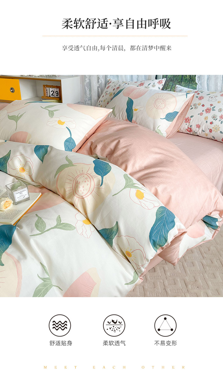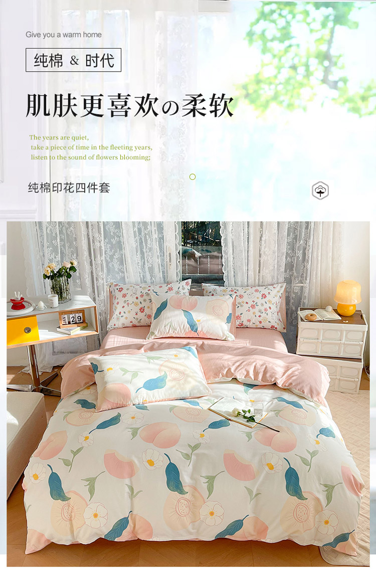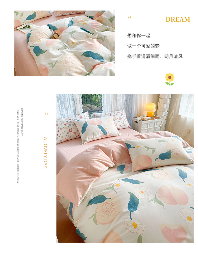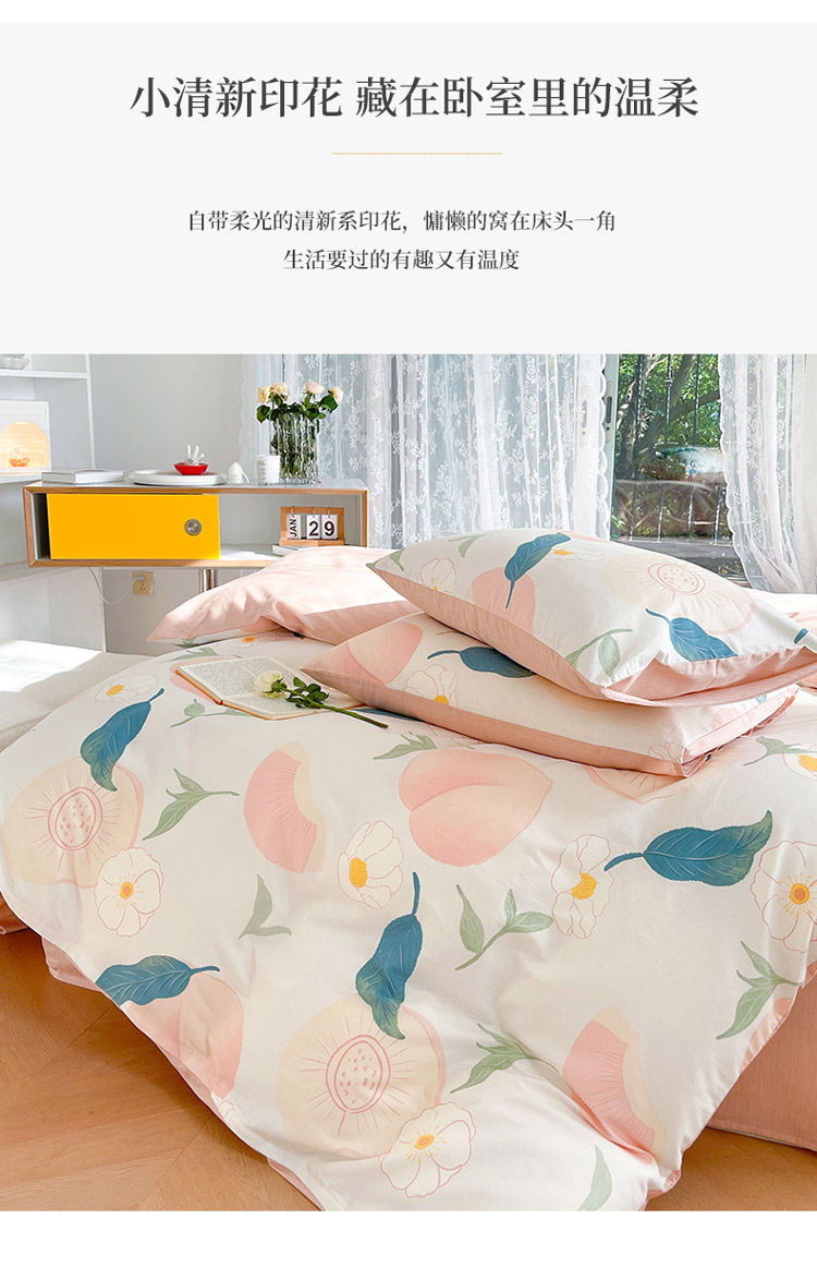 当前位置: 91家纺网 > 商品网购 > 床品套件 > 四件套 > 全棉普通四件套 > 感遇2022新款纯棉印花四件套 粉嫩桃桃