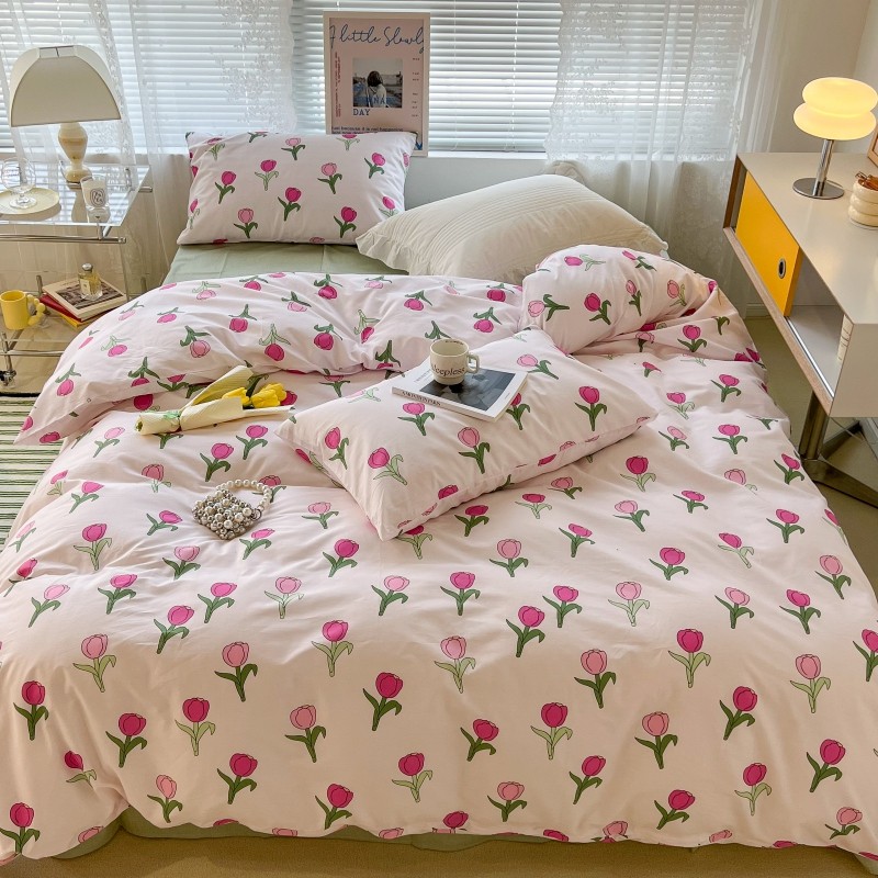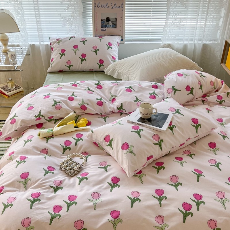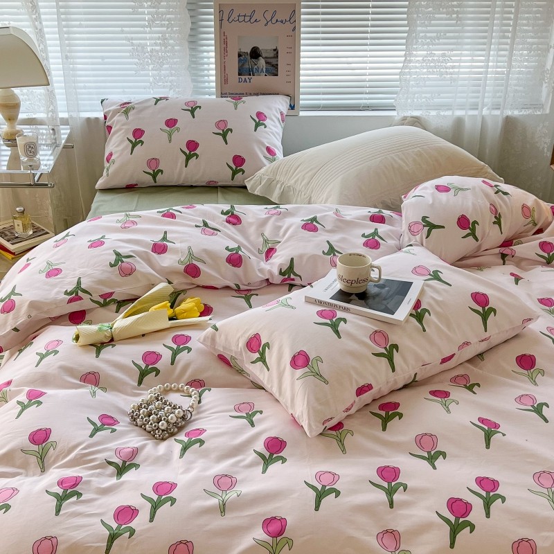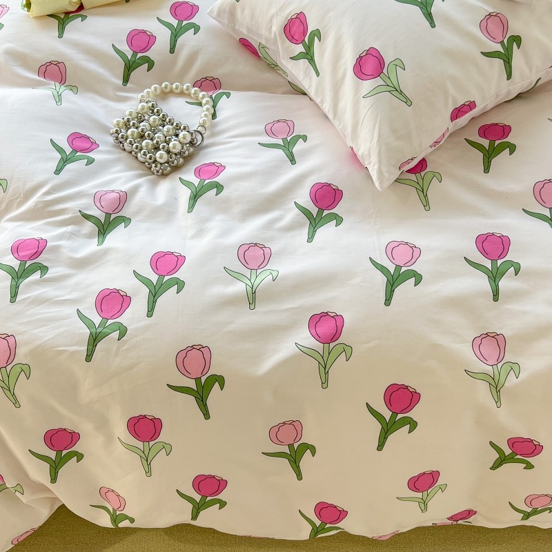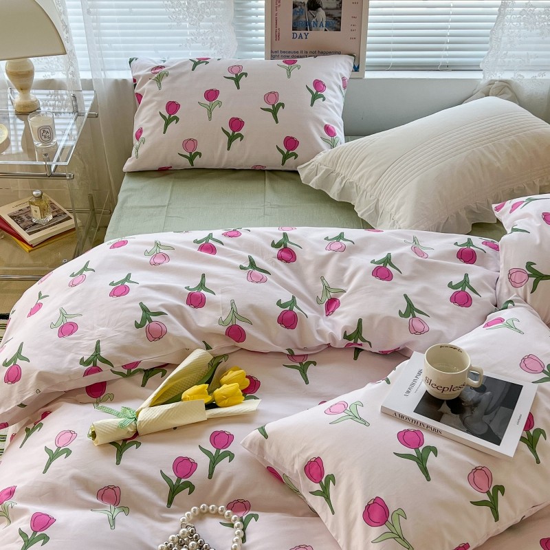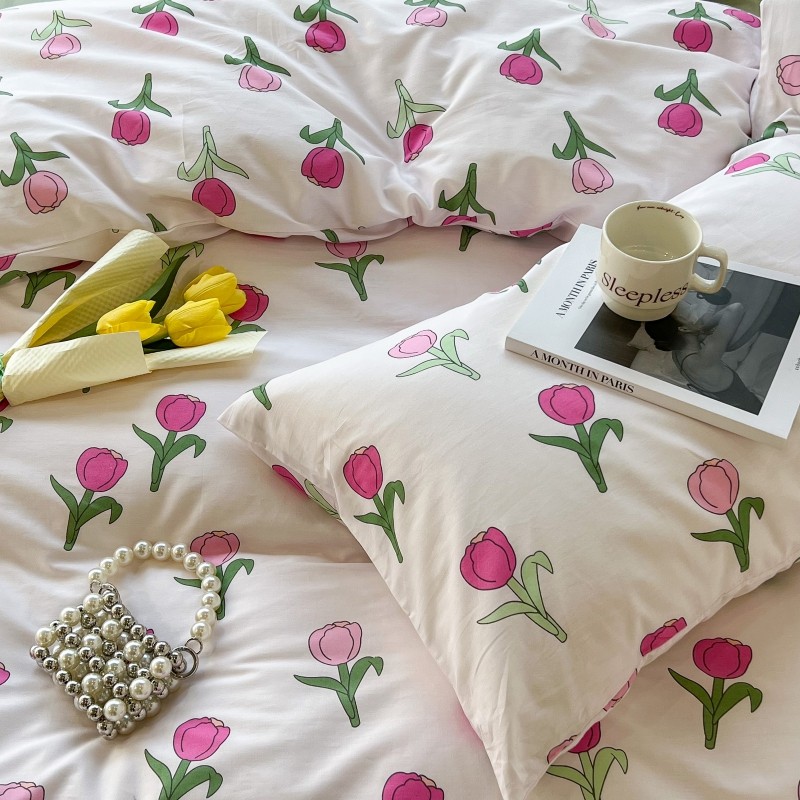 商品名称:昔可家纺 2022新款法式田园花卉系列全棉四件套 玫粉郁金