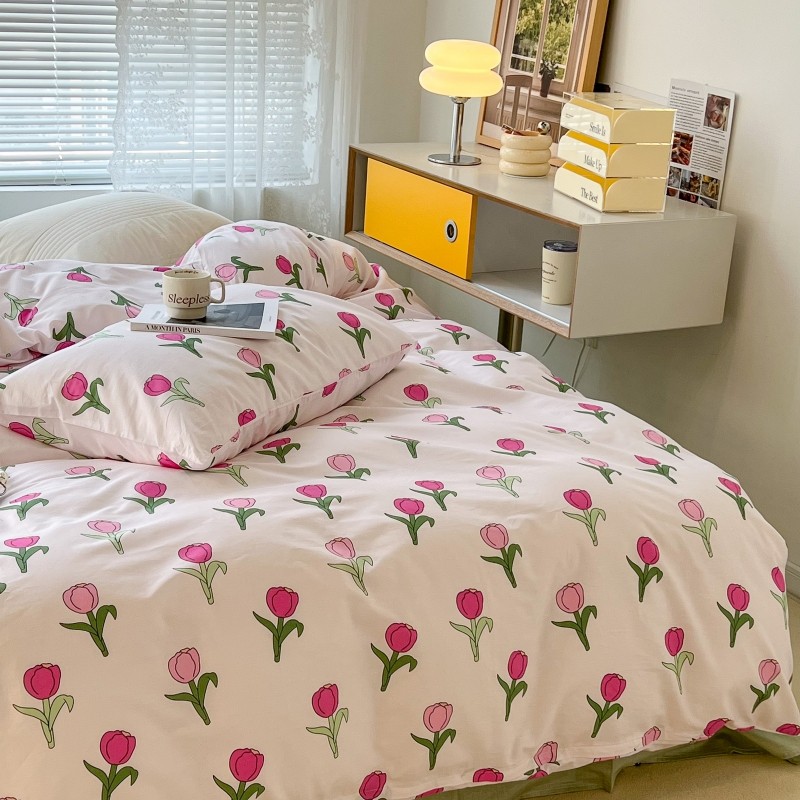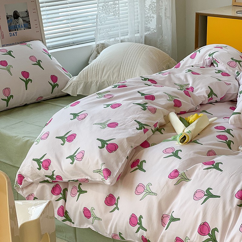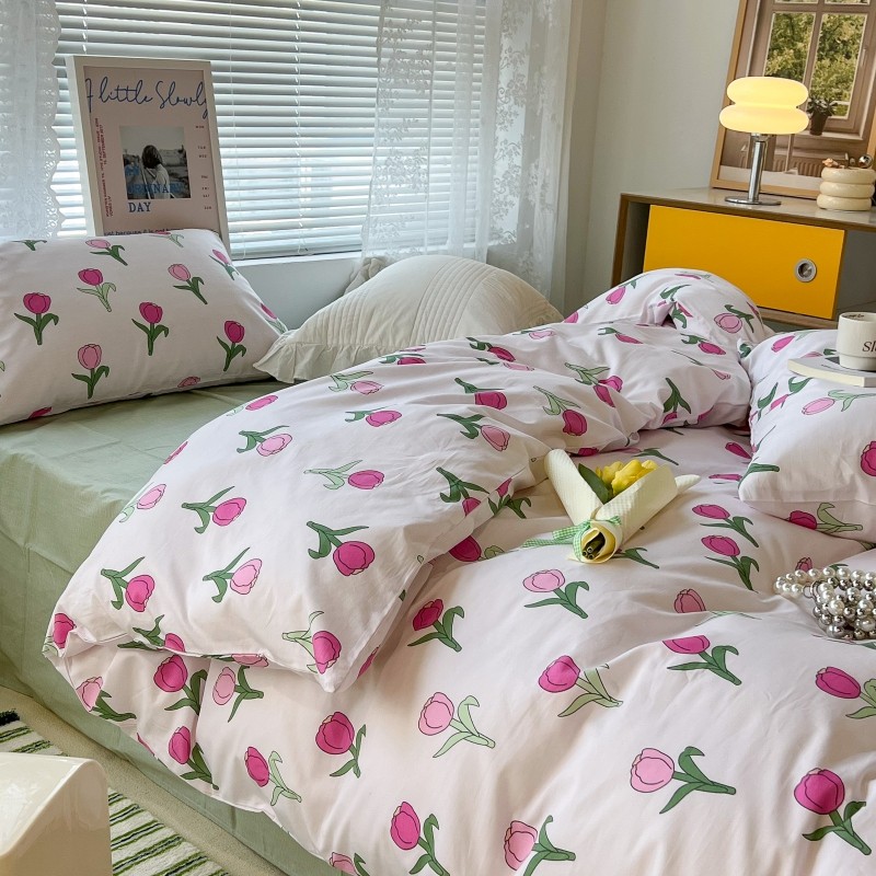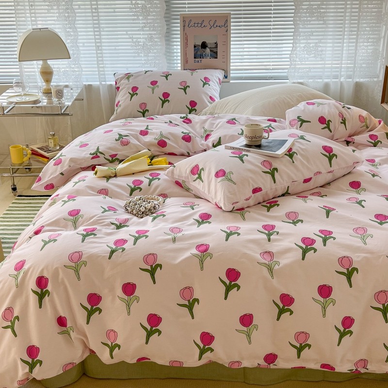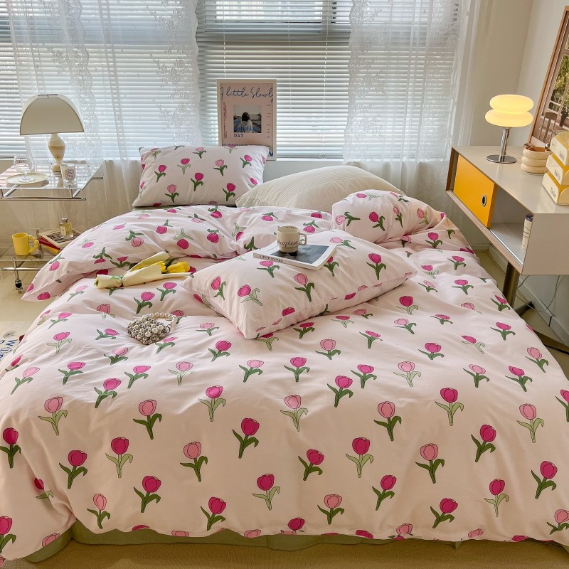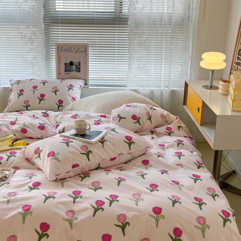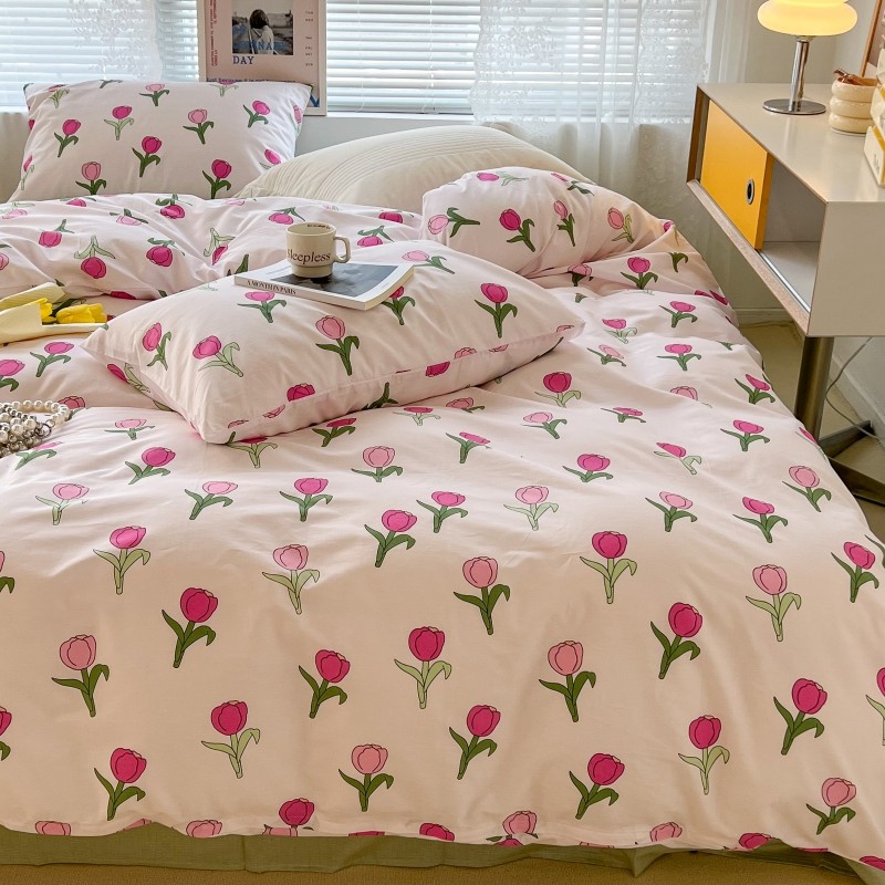 商品名称:昔可家纺 2022新款法式田园花卉系列全棉四件套 玫粉郁金