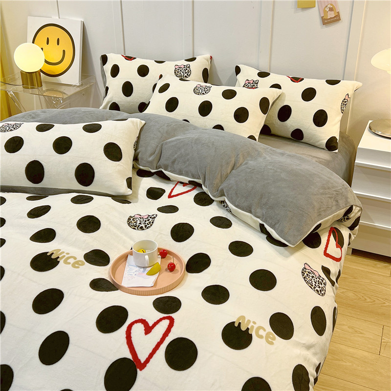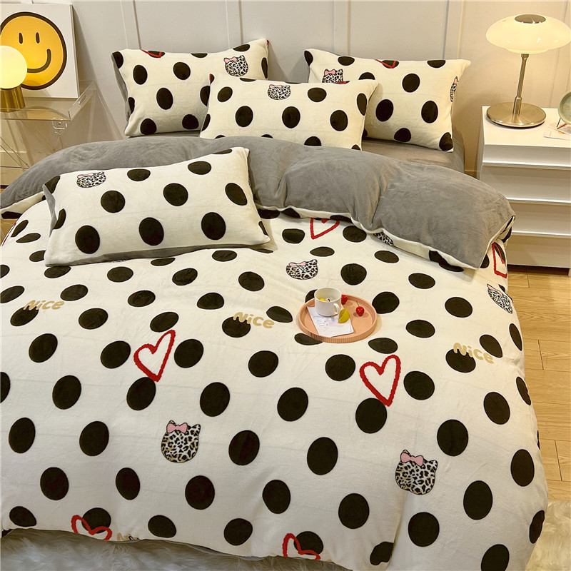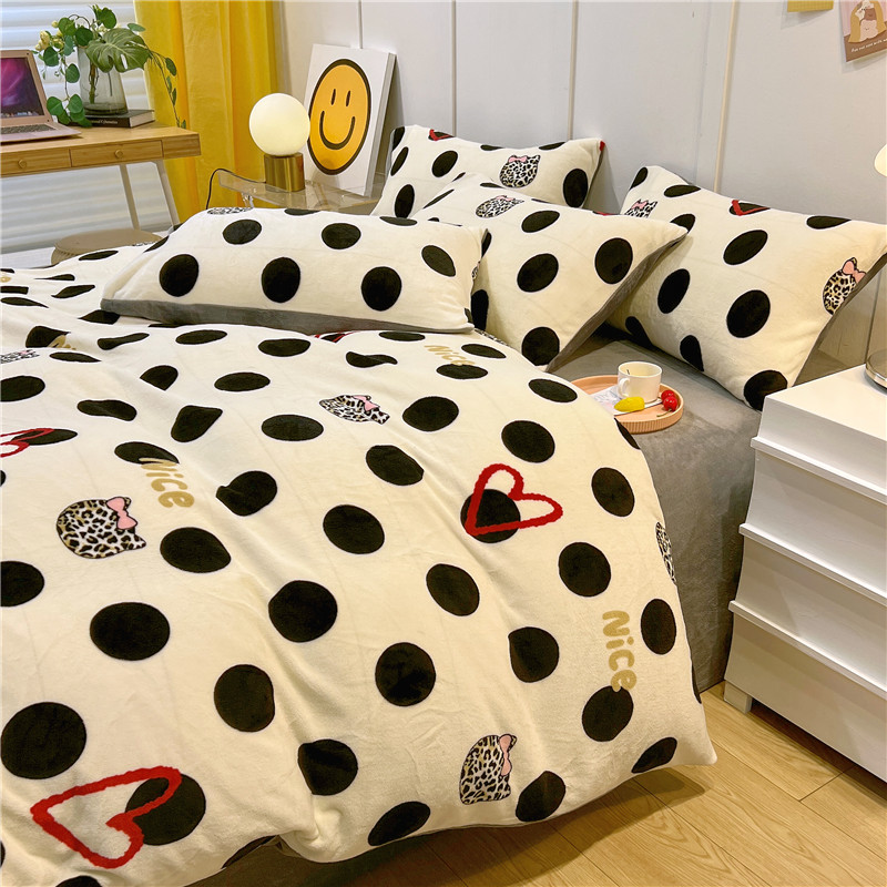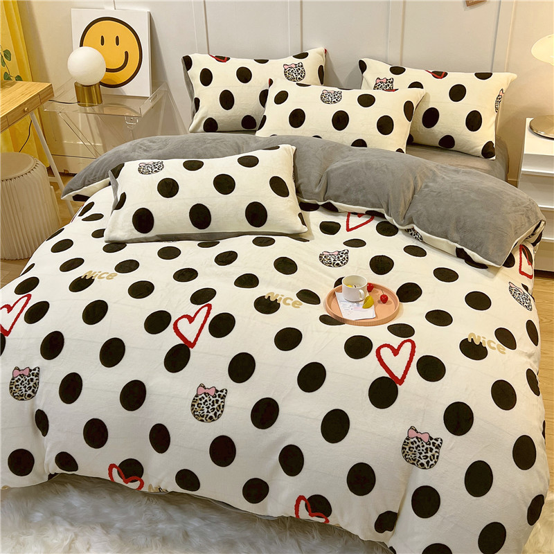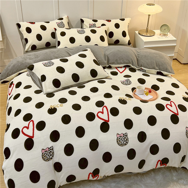 商品名称:孩子王新款冬季加厚牛奶绒水晶绒珊瑚绒印花系列单被套 爱心波点