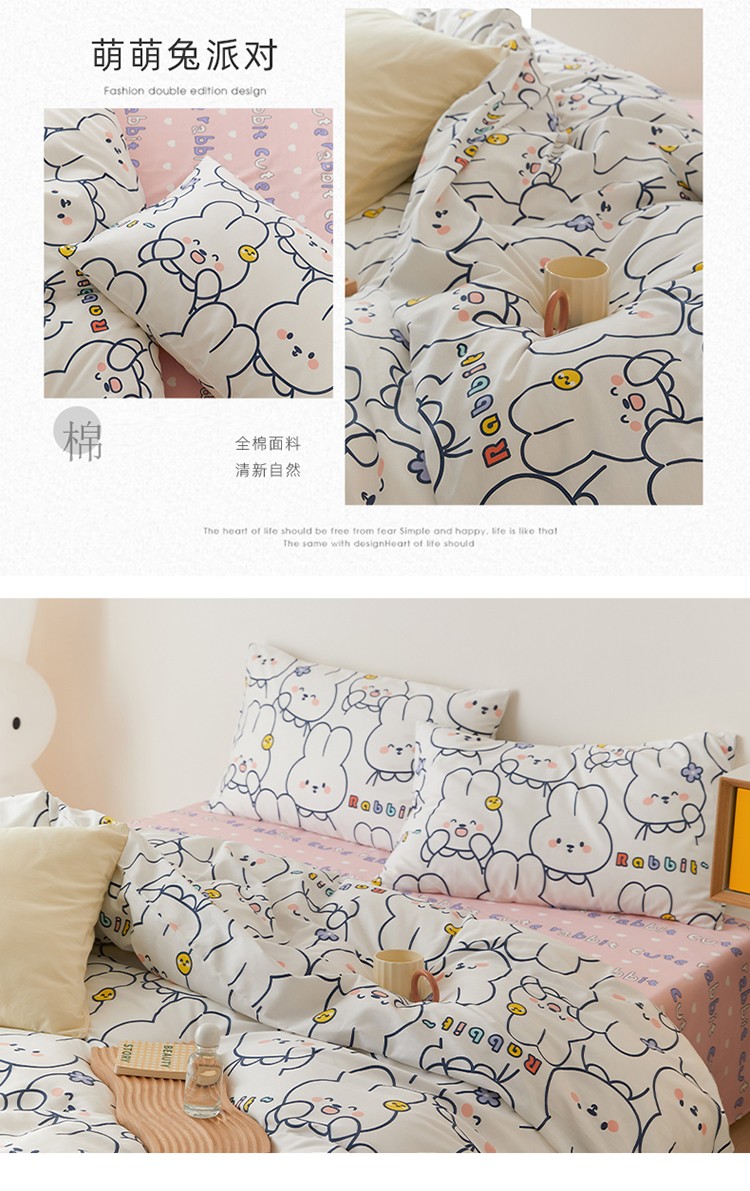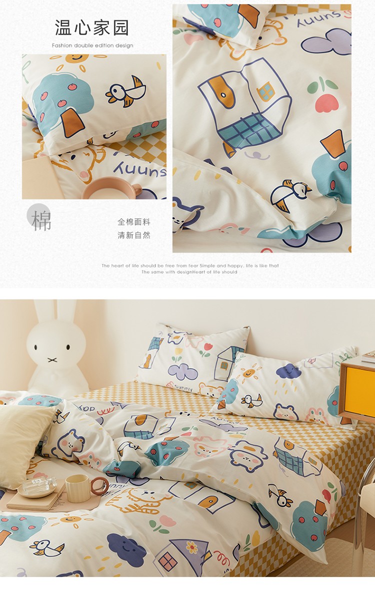 (总)时光里 2025新款230克全消光印花10色专版花型四件套,缤纷熊,狗狗乐园-蓝,花兔兔,花漾,开心腊肠,猫咪日记,木槿,森林兔,线团小咪,小雏菊