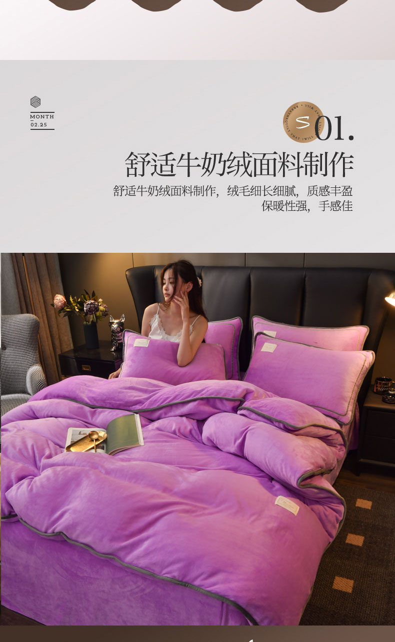 当前位置: 91家纺网 > 商品网购 > 床品套件 > 四件套 > 牛奶绒四件套 > 啊雅家居 2026新款纯色包边双面牛奶绒四件套 包紫色