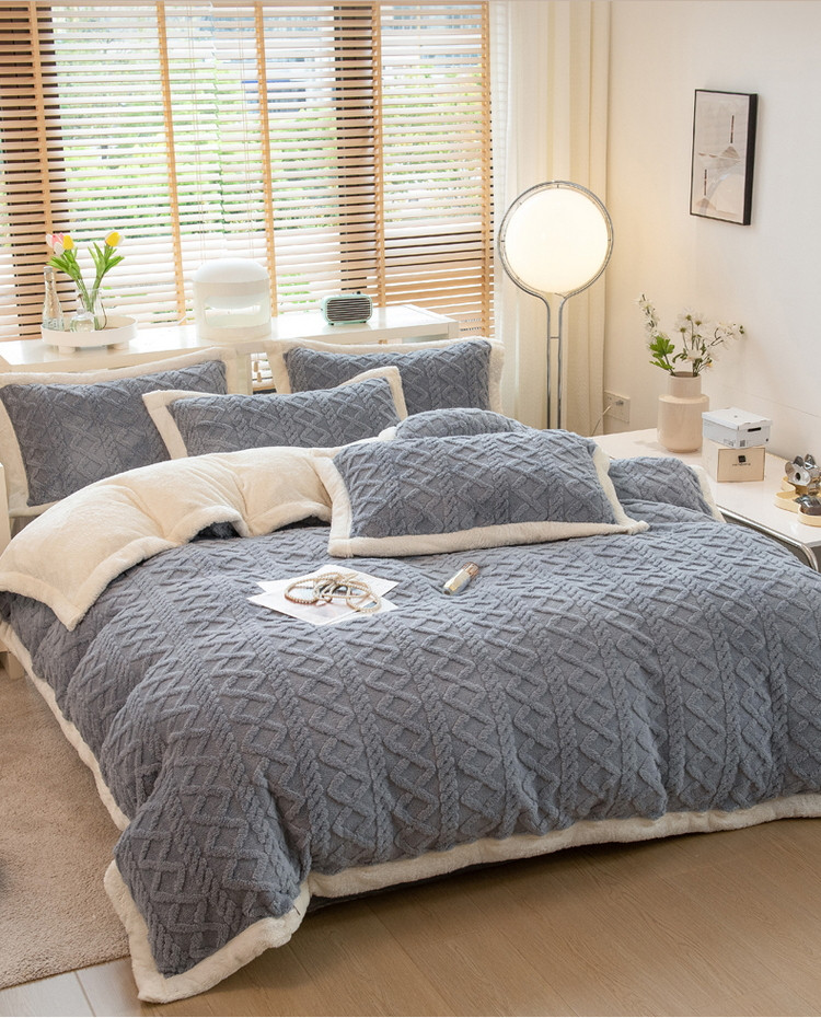 丝羽坊 直播爆款220克塔芙绒提花四件套剪花雕花牛奶绒 蓝灰