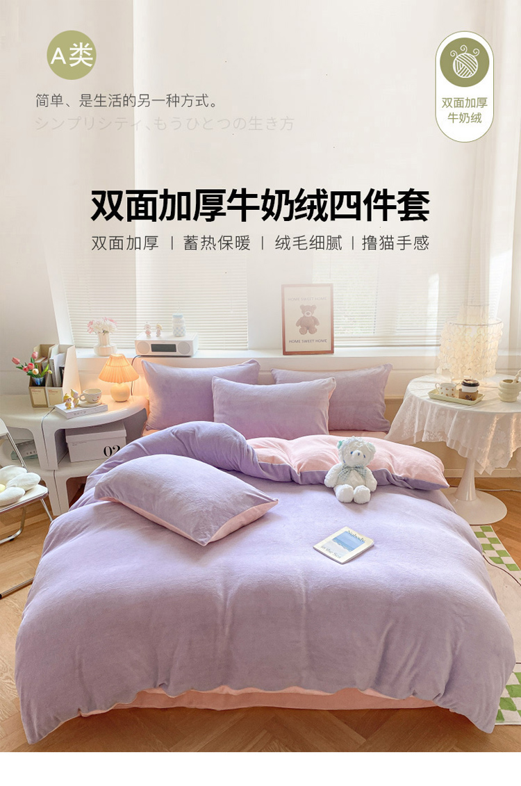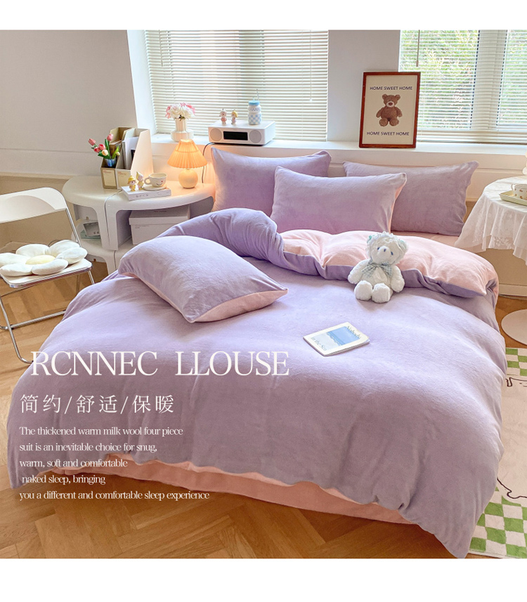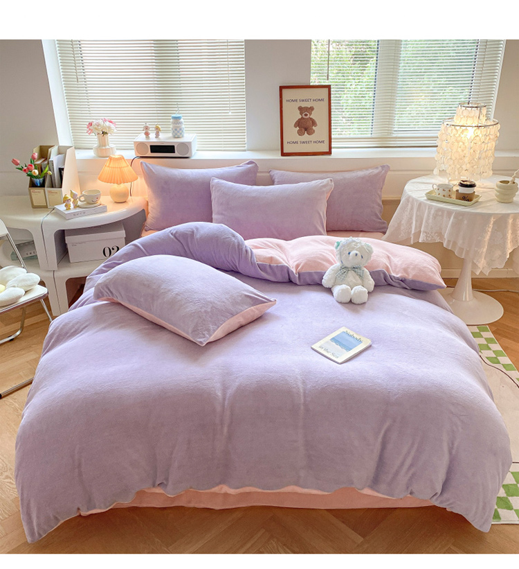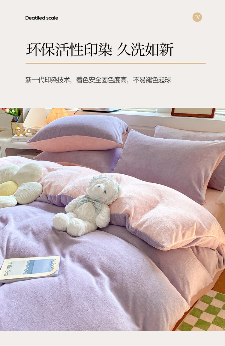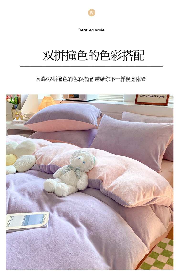 当前位置: 91家纺网 > 商品网购 > 床品套件 > 四件套 > 牛奶绒四件套 > 寐居 2022新款高克重加厚保暖拼色牛奶绒四件套 芋泥粉紫