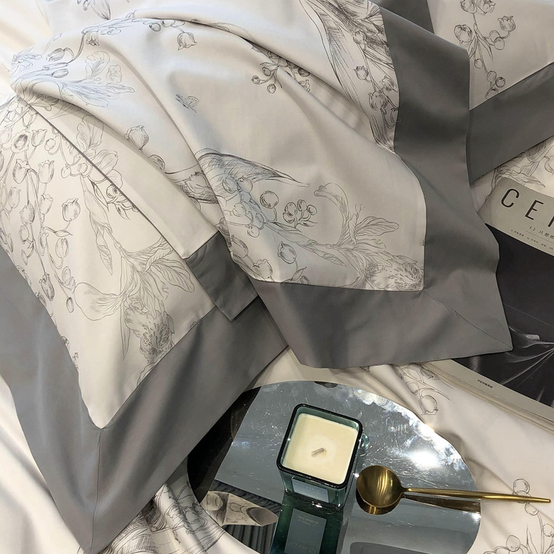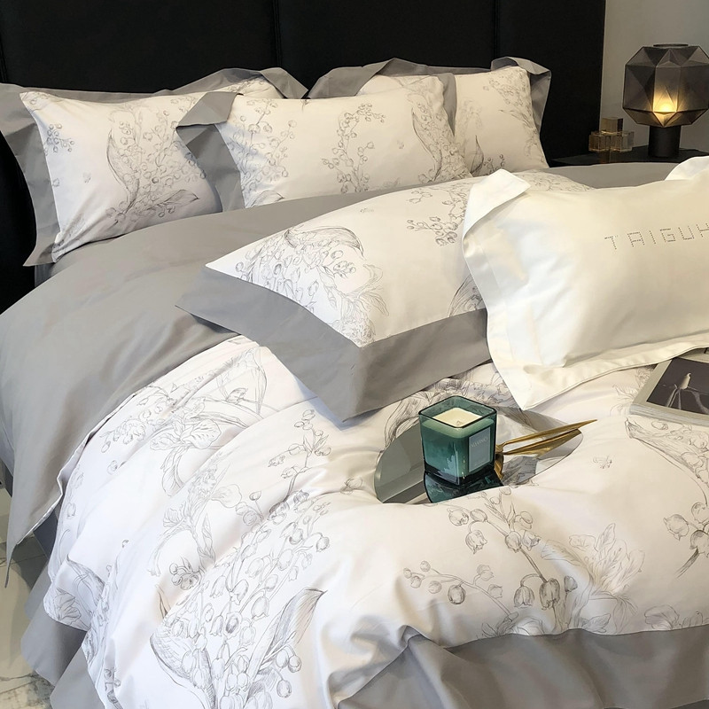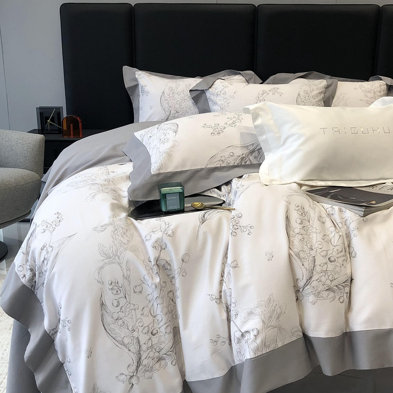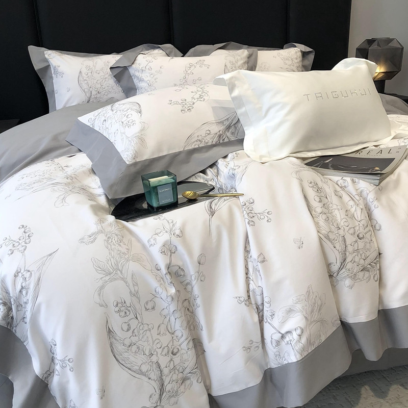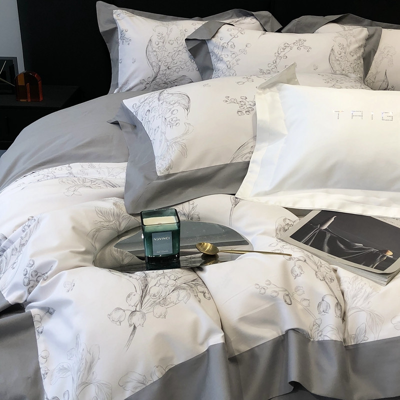 太古汇 2022新款火山小磨毛数码印花四件套 花漾-灰