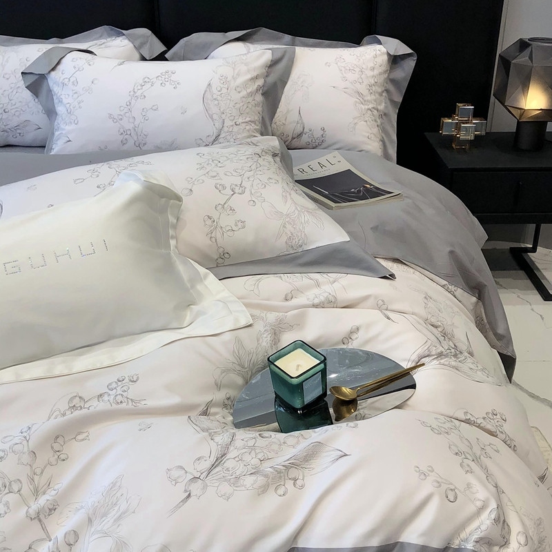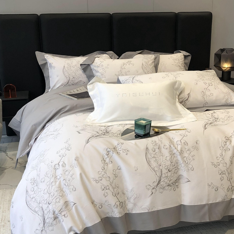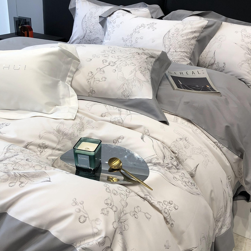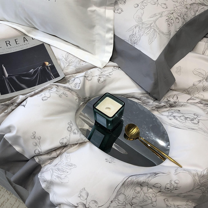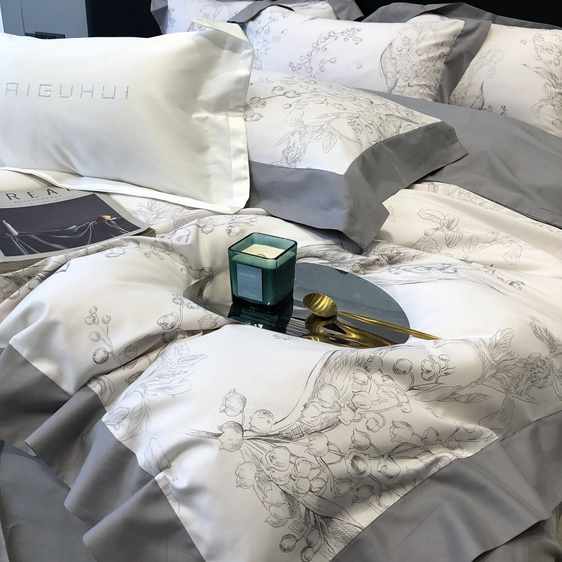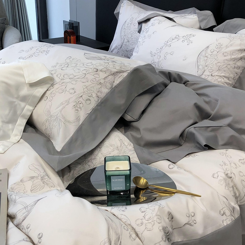 太古汇 2022新款火山小磨毛数码印花四件套 花漾-灰