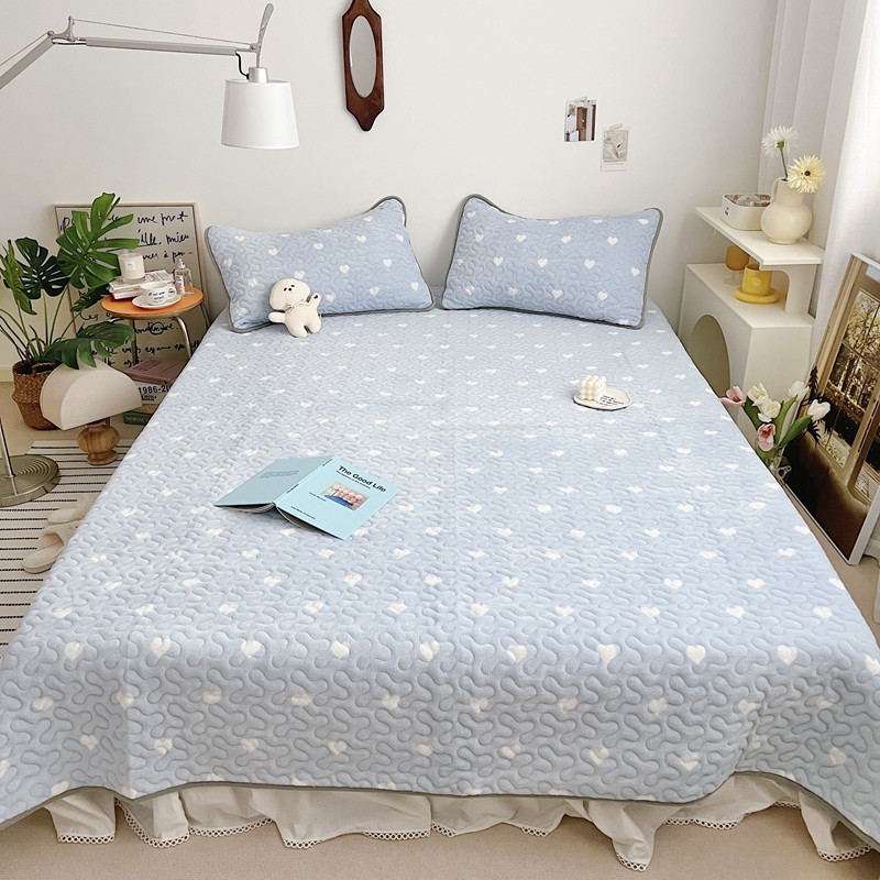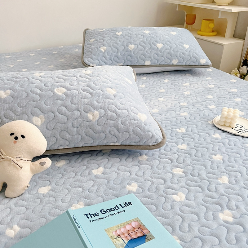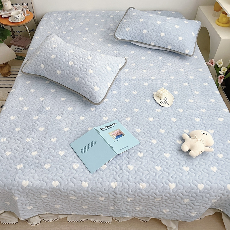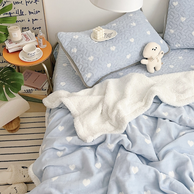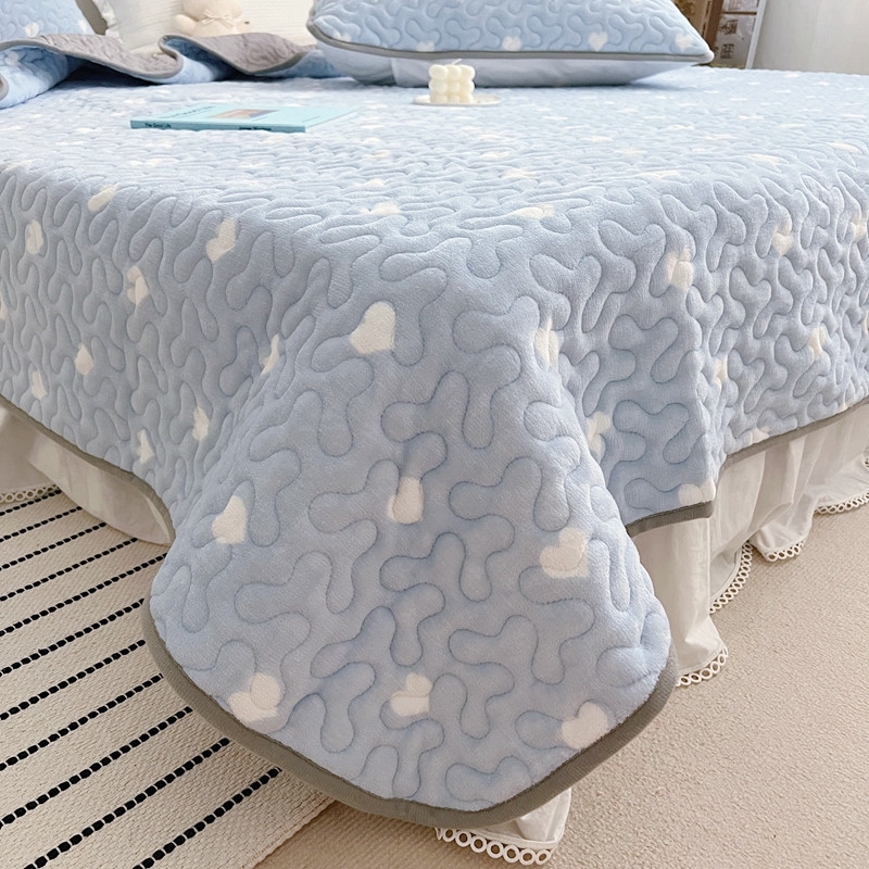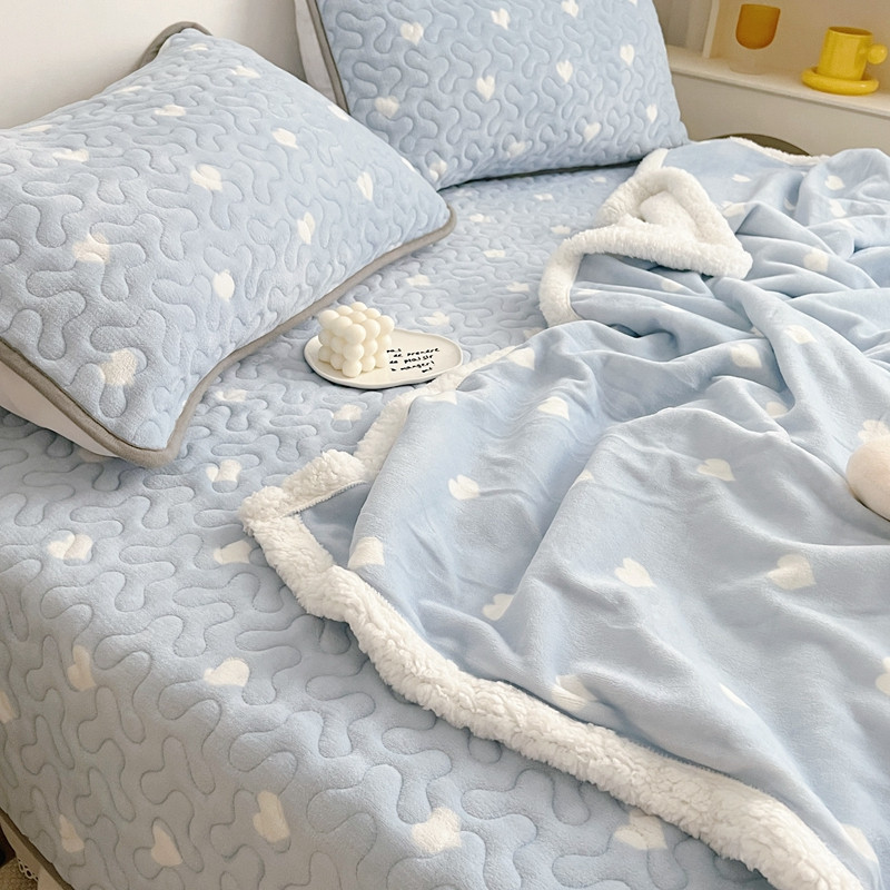 美乐迪 2022新款多功能牛奶绒亲肤棉床盖套件 爱心蓝