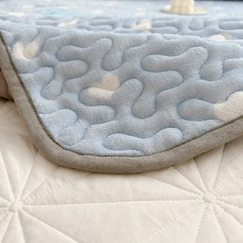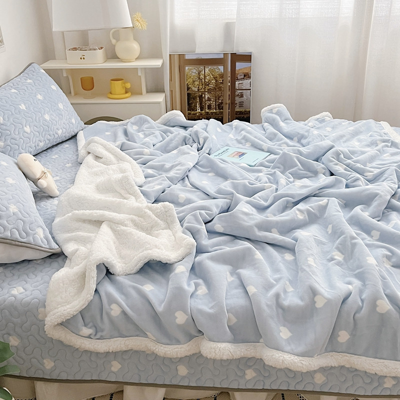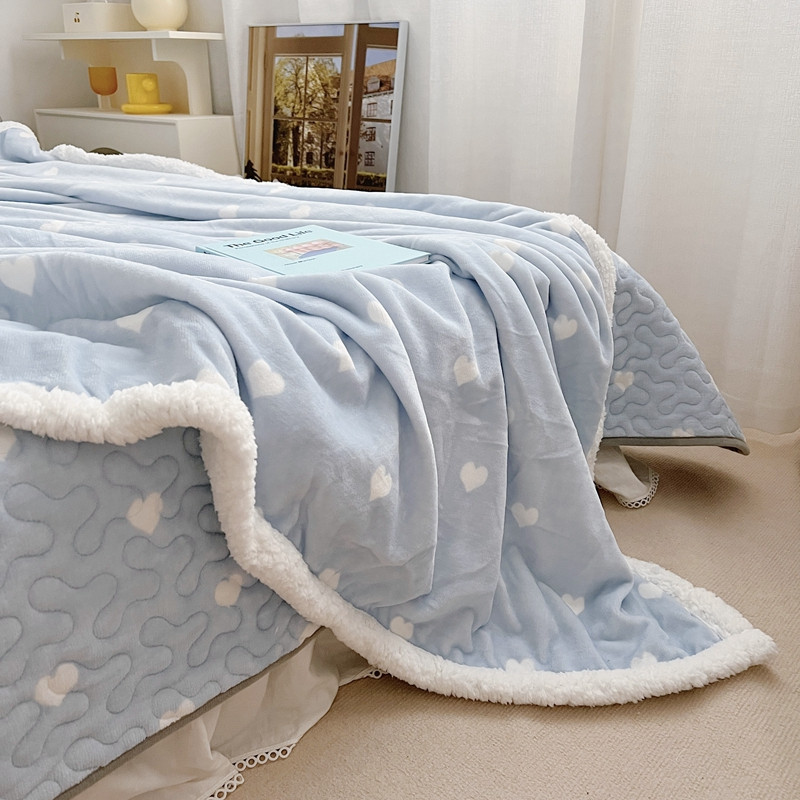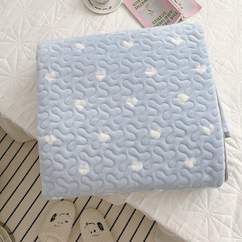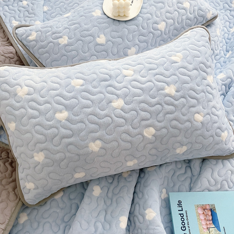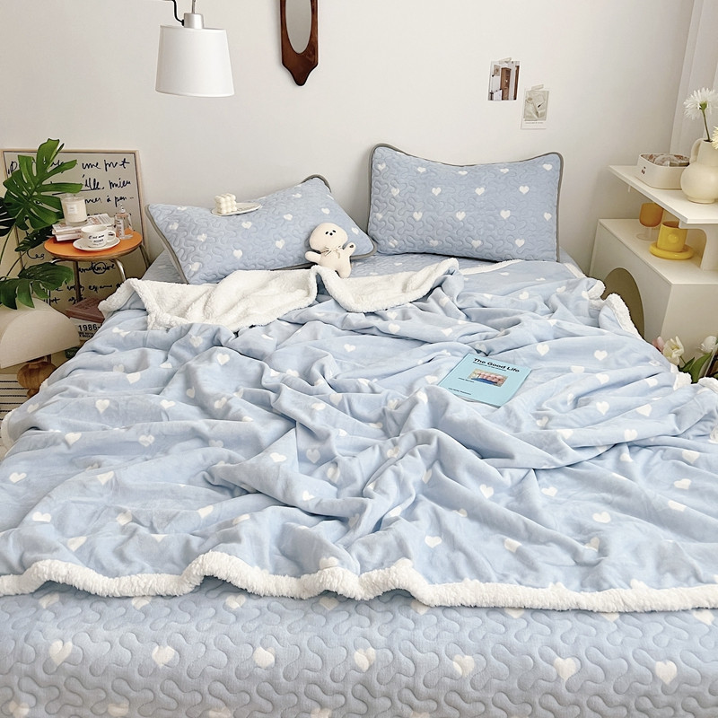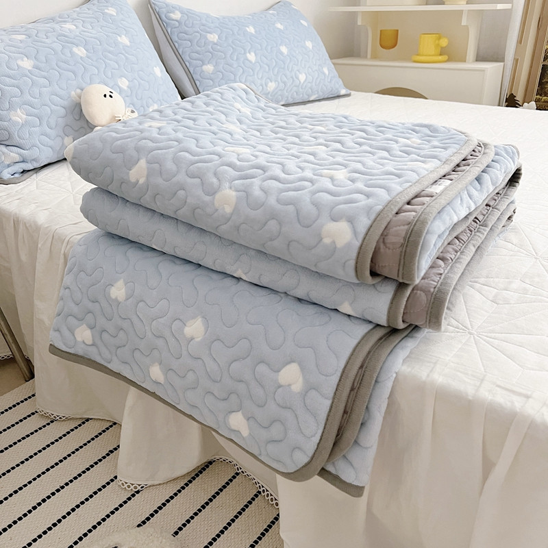 美乐迪 2022新款多功能牛奶绒亲肤棉床盖套件 爱心蓝