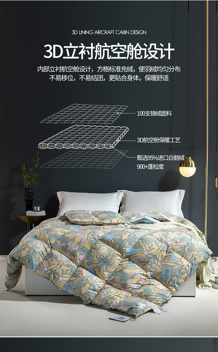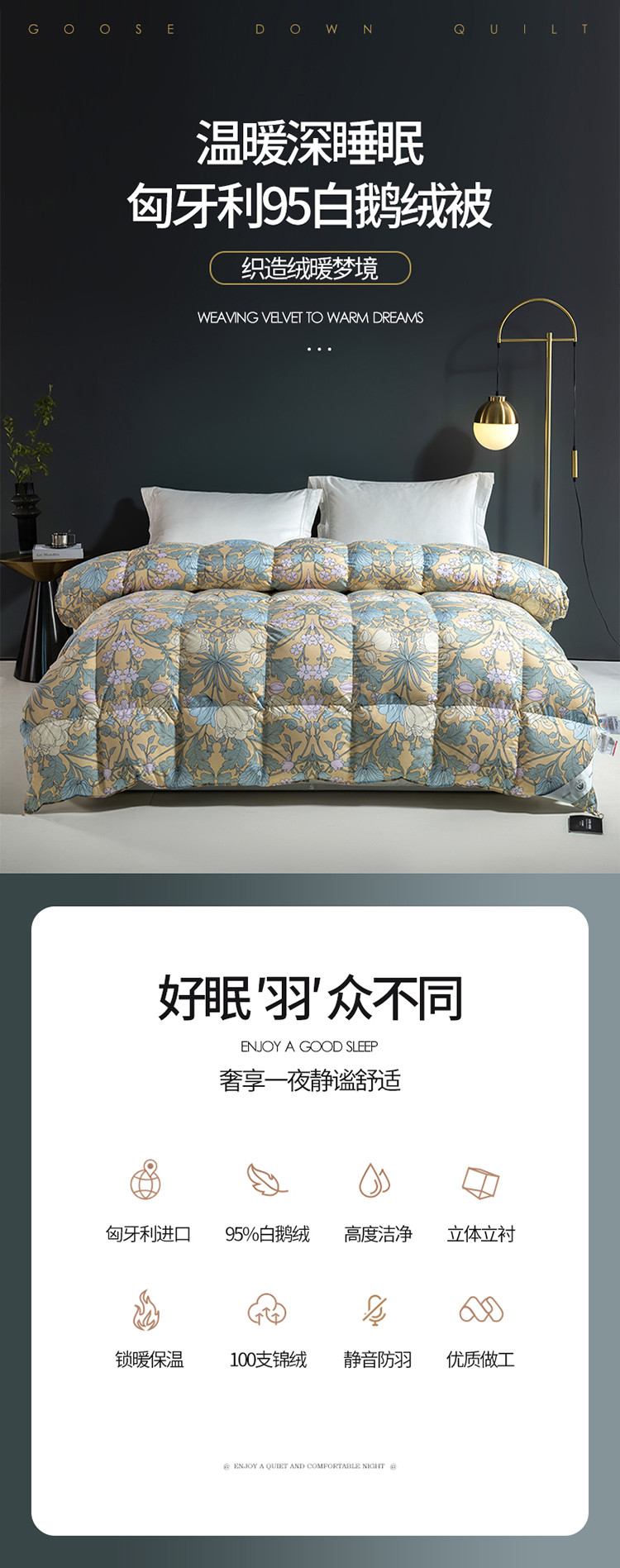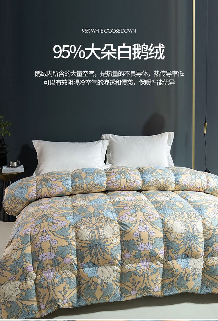 (总)俏企鹅 2025新款100支锦绒95白鹅绒被,淡雅灰,高级紫,宫廷粉,欧式黄,清新绿