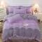 优姿家纺 牛奶绒贴边绣花荷叶花边保暖四件 花仙子-紫