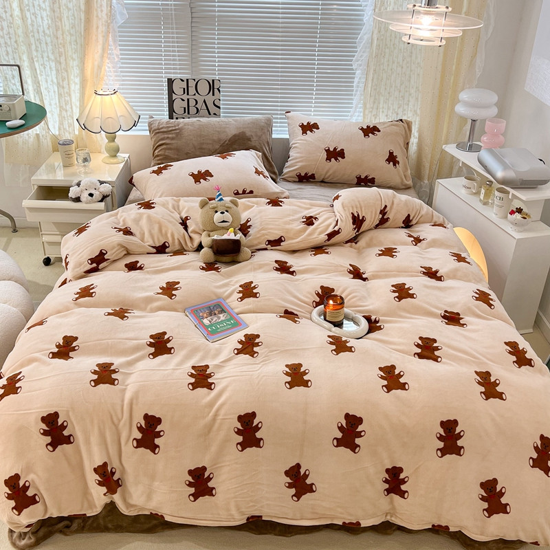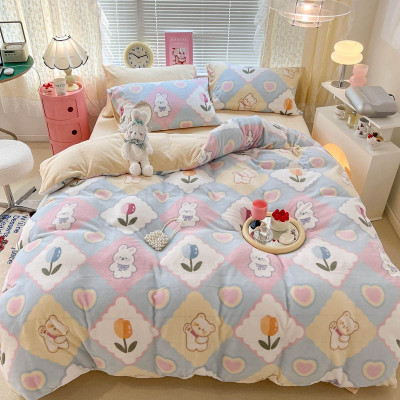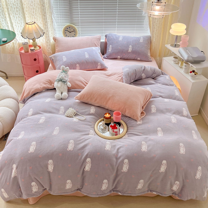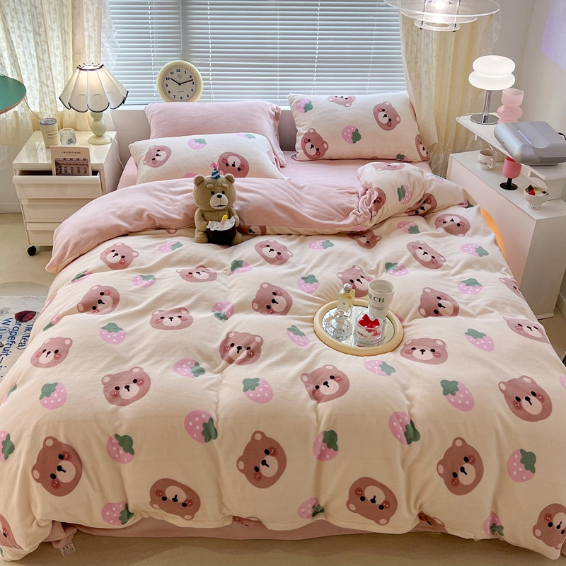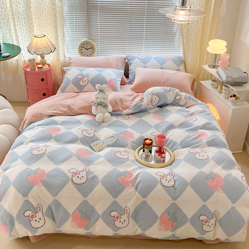 (总)昔可家纺 2024新款印花牛奶绒四件套系列-洛丽塔风,萝莉小兔,小熊烘焙屋,小熊玩偶屋