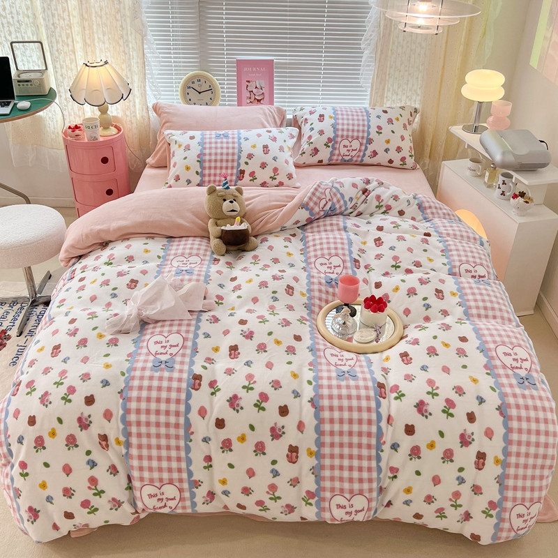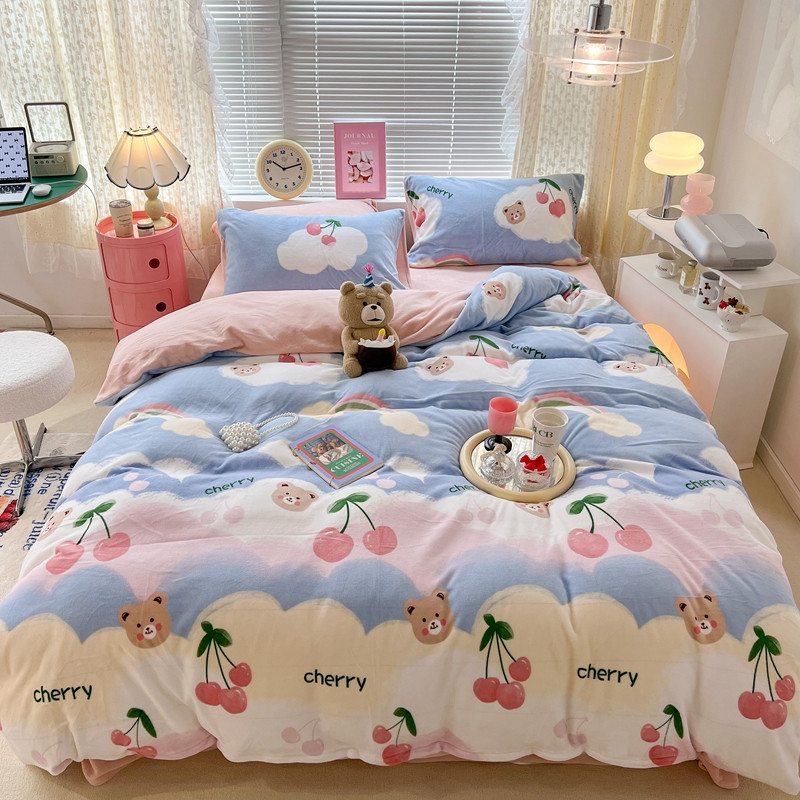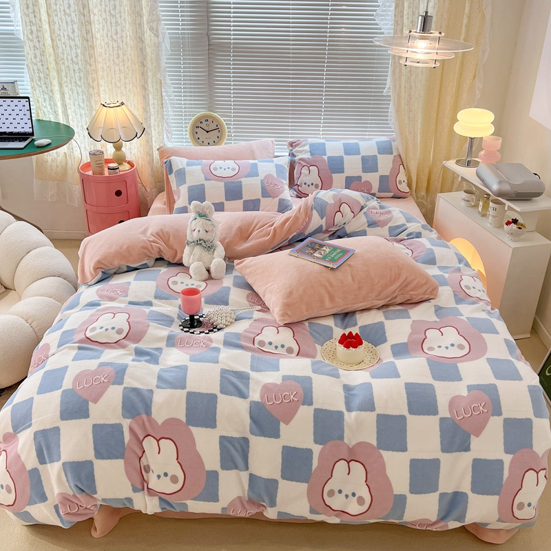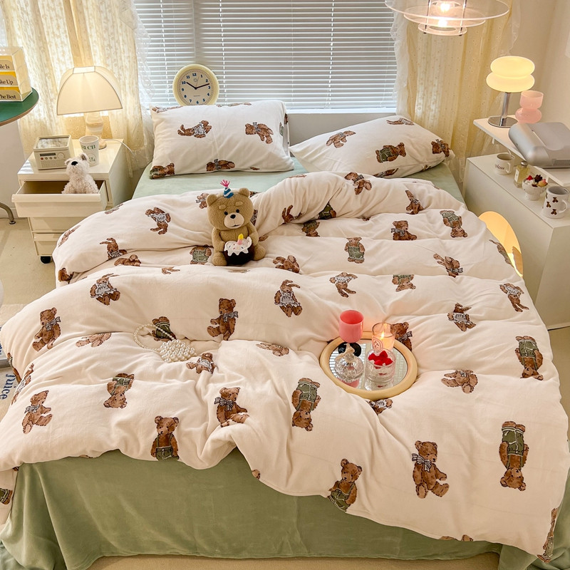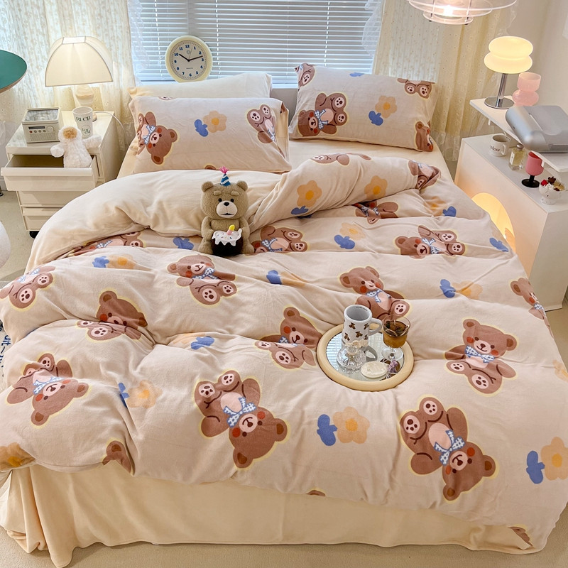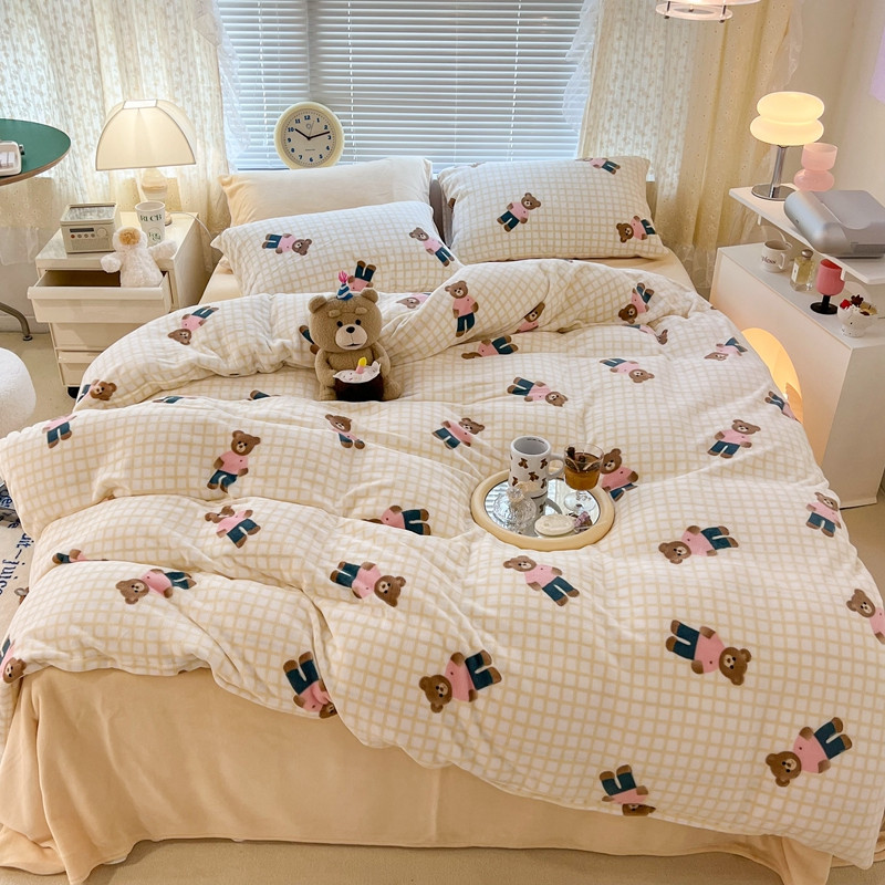 (总)昔可家纺 2024新款印花牛奶绒四件套系列-洛丽塔风,萝莉小兔,小熊烘焙屋,小熊玩偶屋