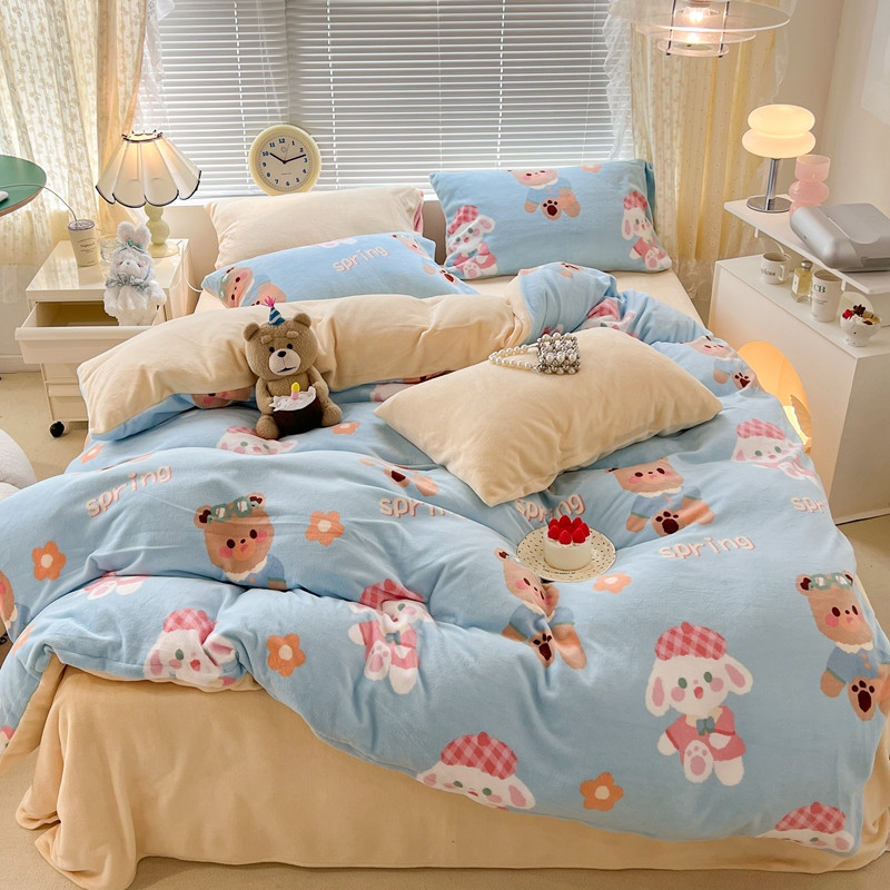 (总)昔可 2022新款牛奶绒卡通系列四件套