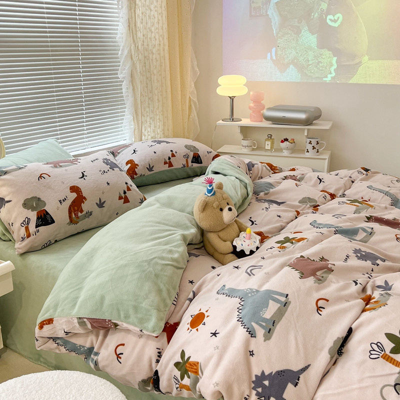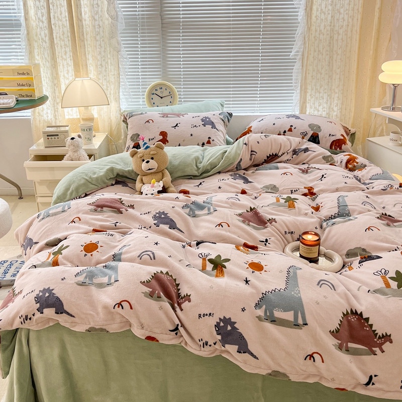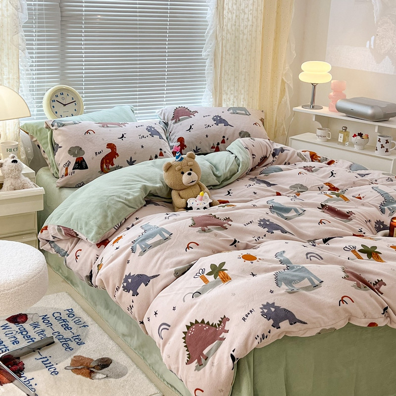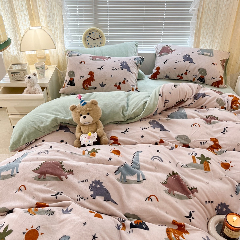 昔可 2022新款牛奶绒卡通系列四件套 恐龙乐园