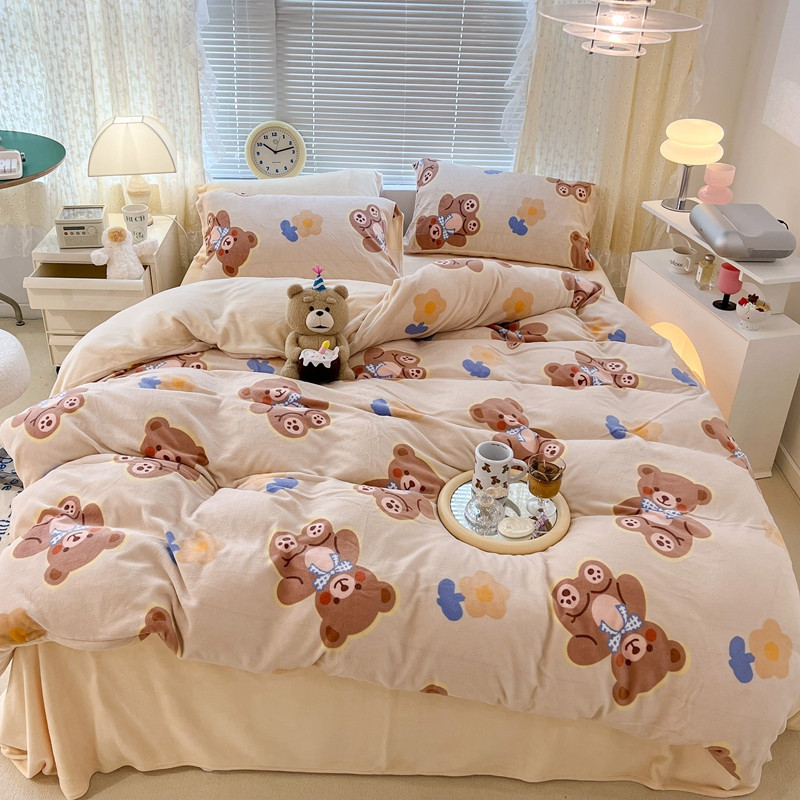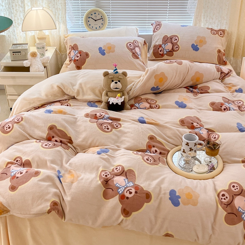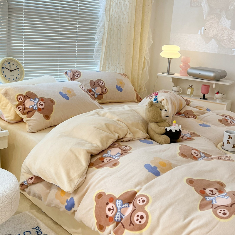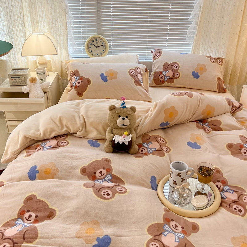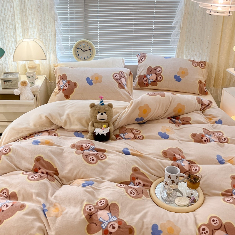 昔可 2022新款牛奶绒卡通系列四件套 小熊软糖