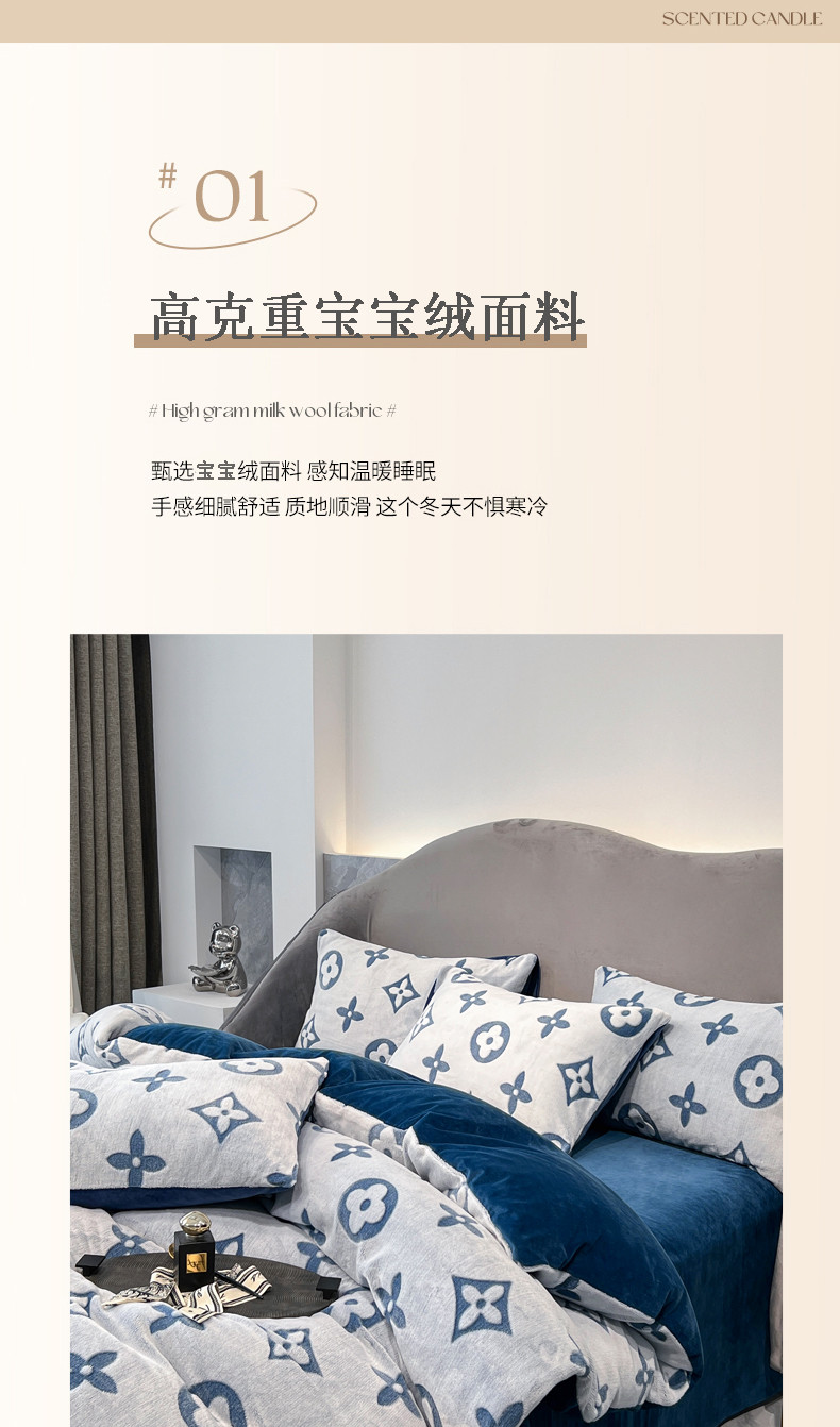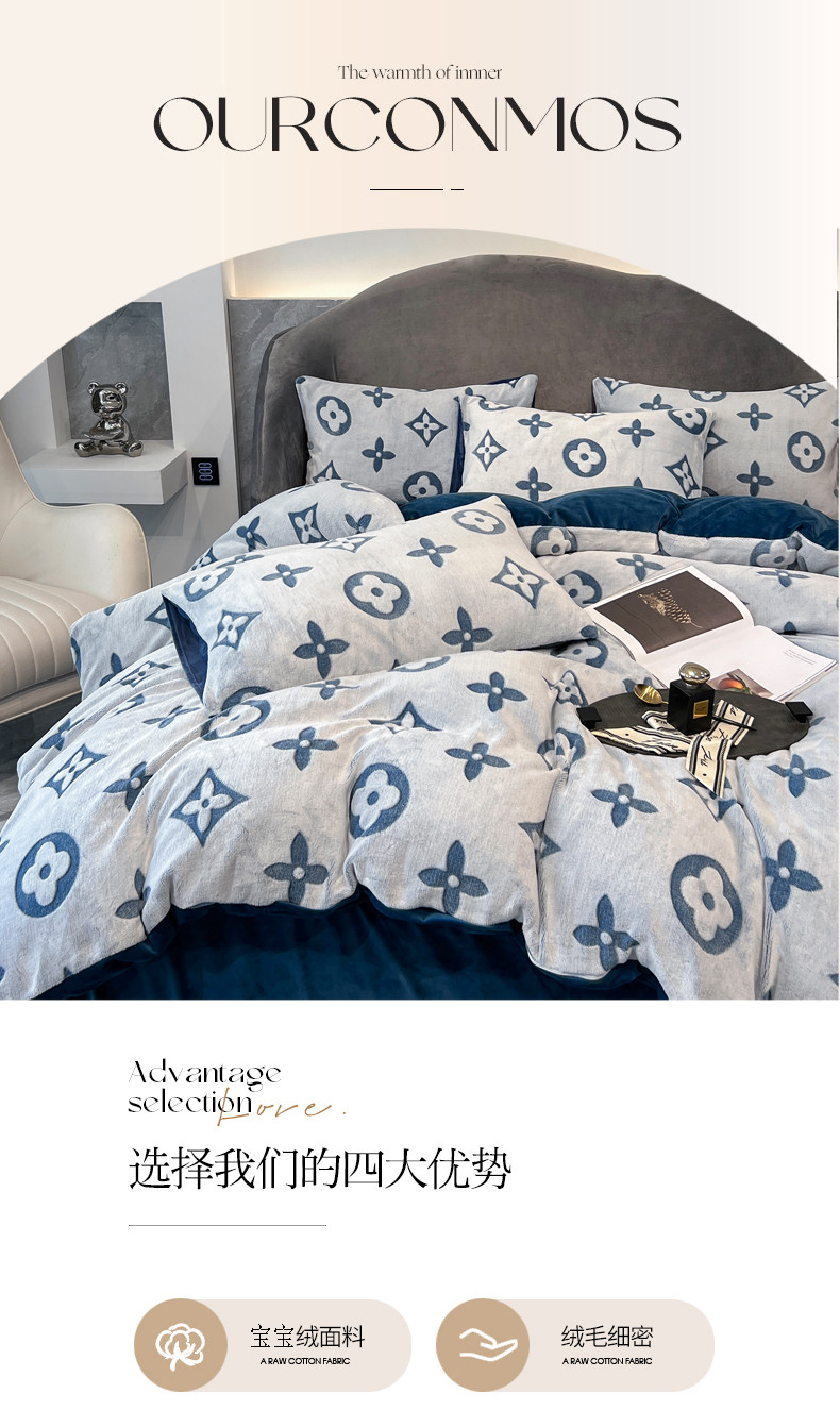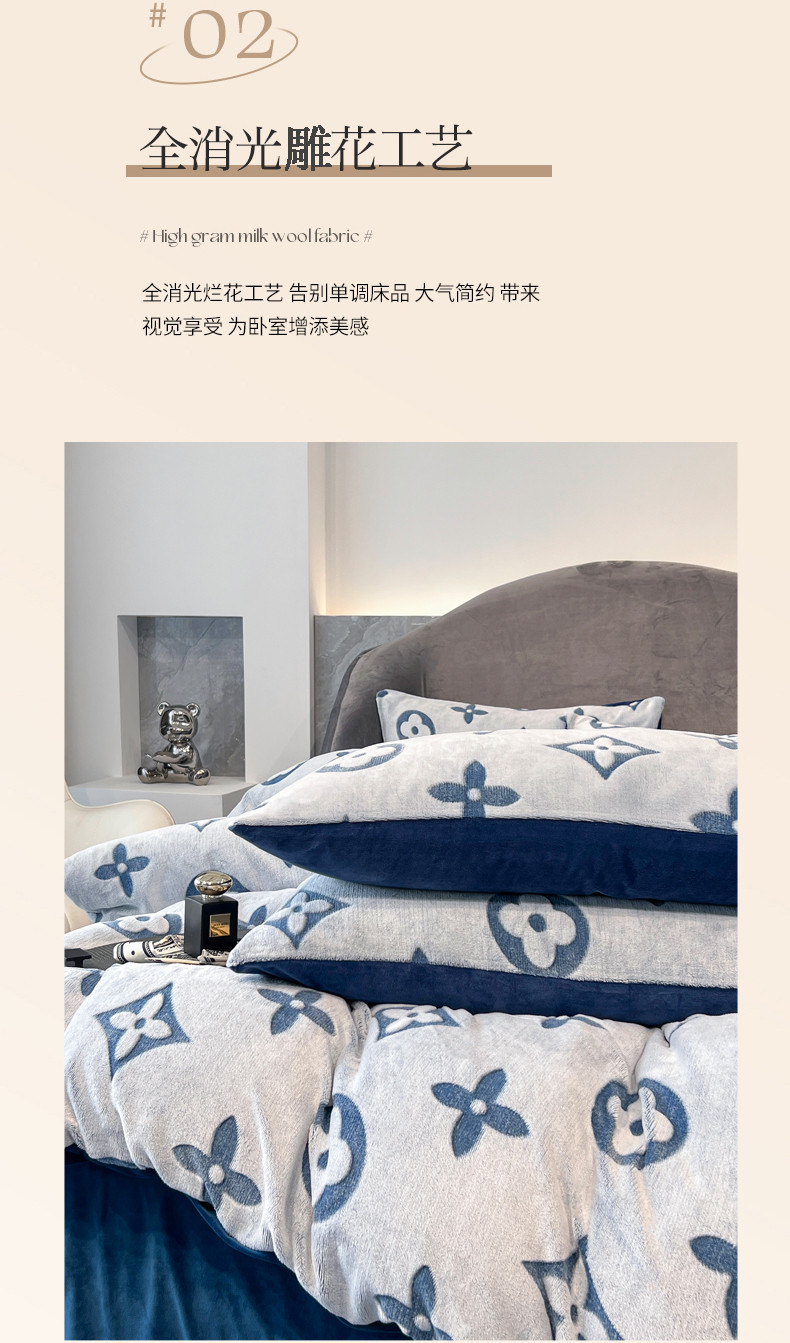 当前位置: 91家纺网 > 商品网购 > 床品套件 > 四件套 > 雕花绒四件套 > 啊雅家居 2025新款雕花绒加宝宝绒四件套 点雕蓝