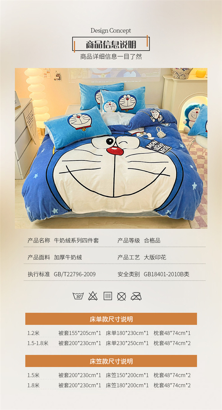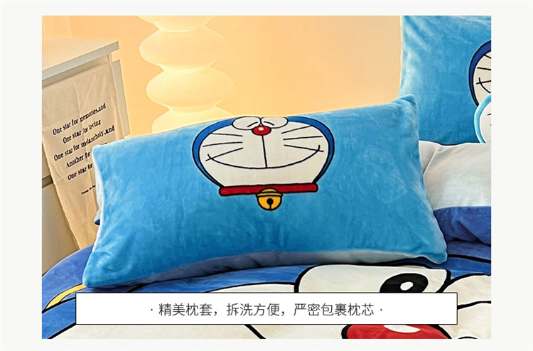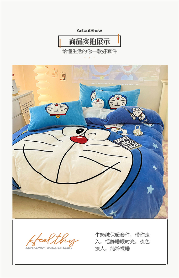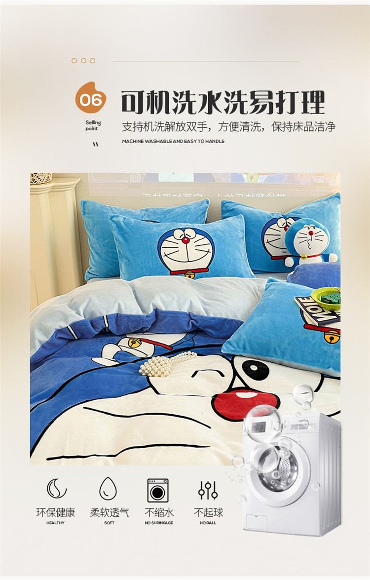 商品名称:正版哆啦A梦叮当猫授权大版数码印花加厚牛奶绒系列四件套 绒大版-撑杆跳叮当