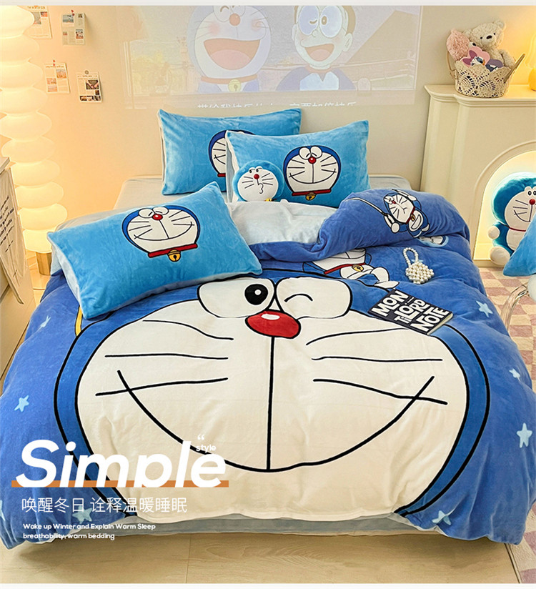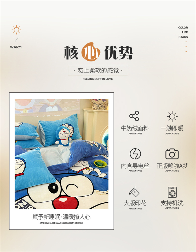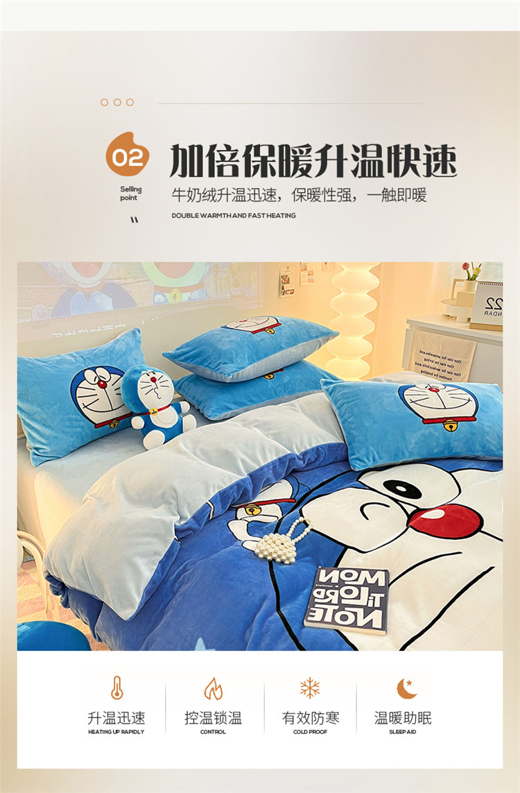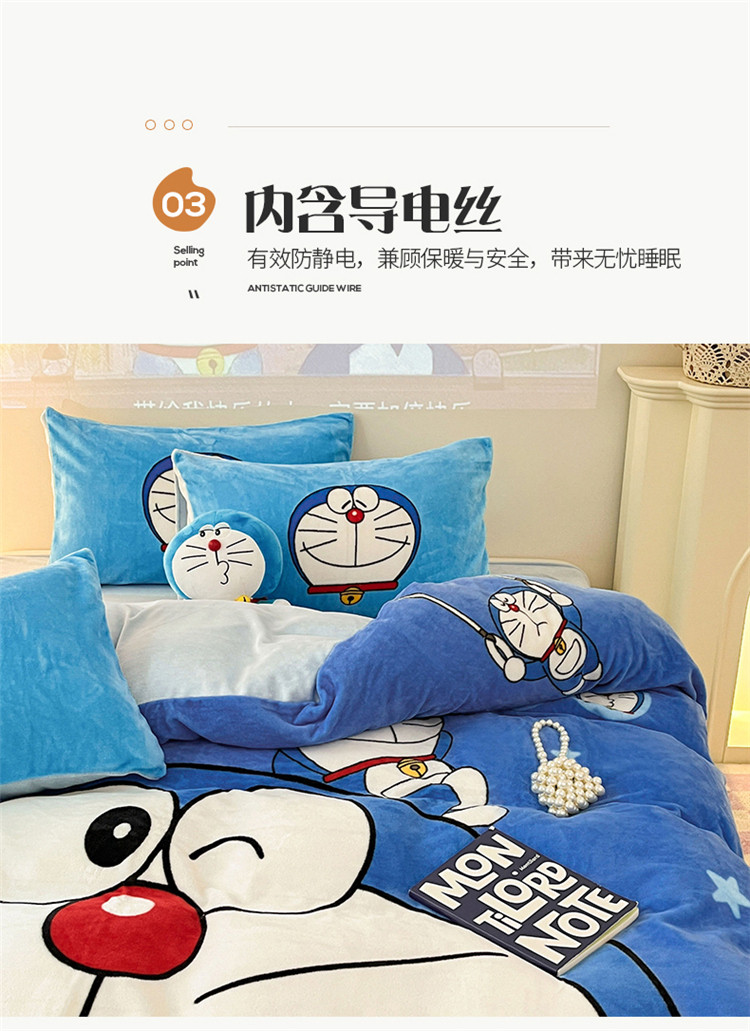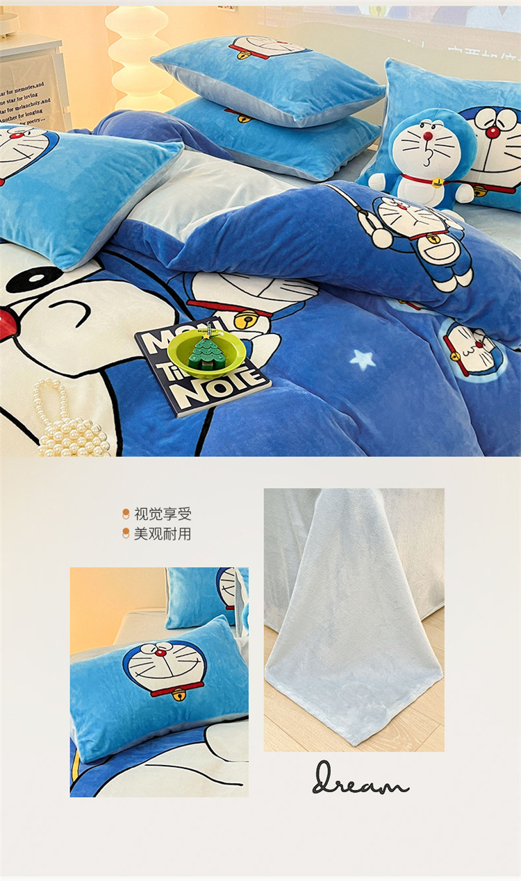 商品名称:正版哆啦A梦叮当猫授权大版数码印花加厚牛奶绒系列四件套 绒大版-撑杆跳叮当