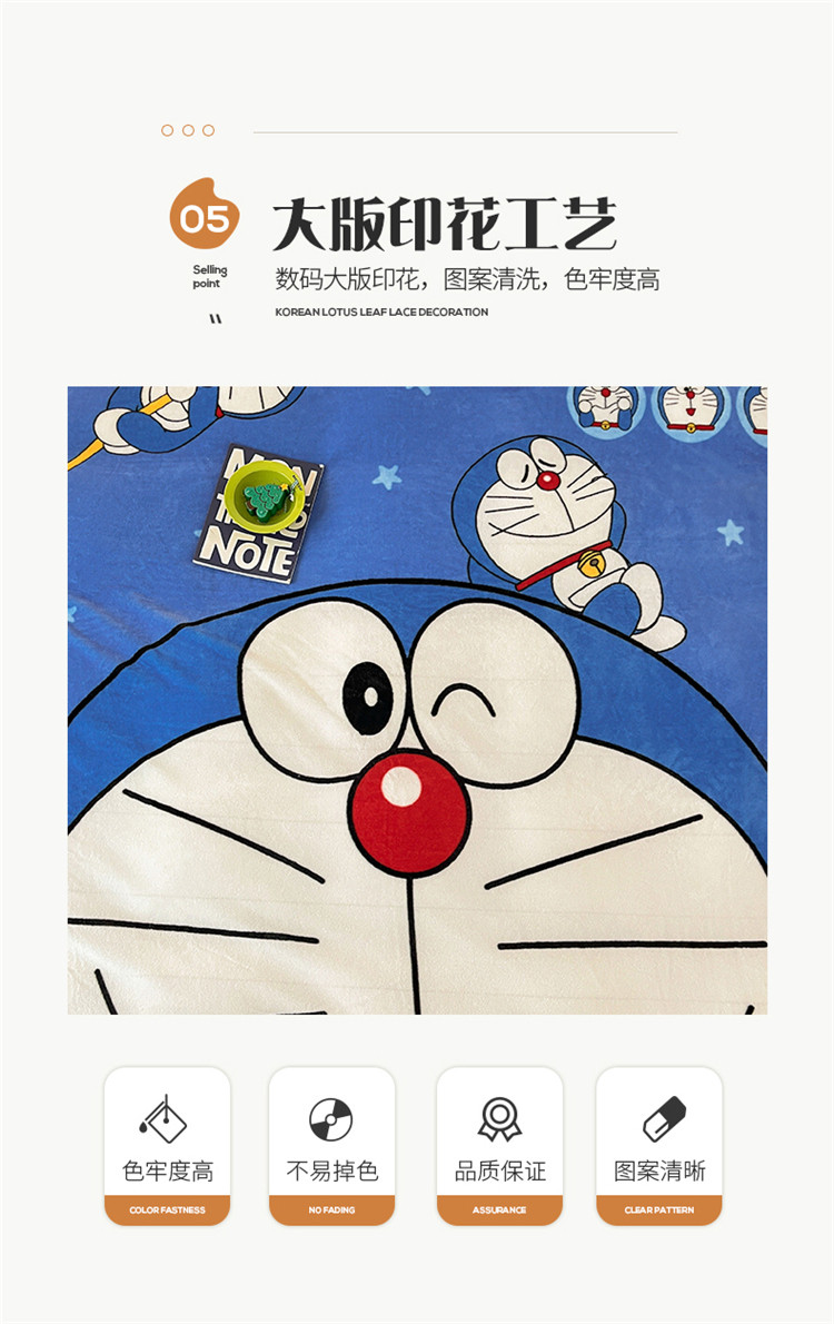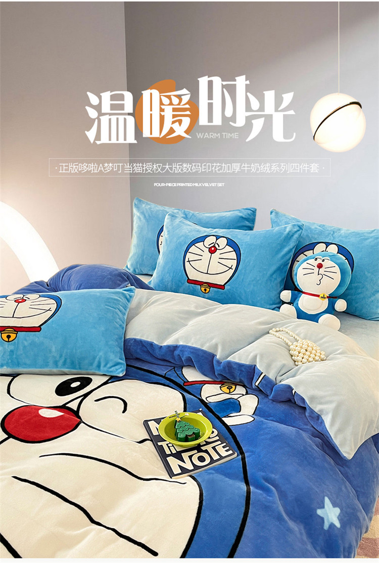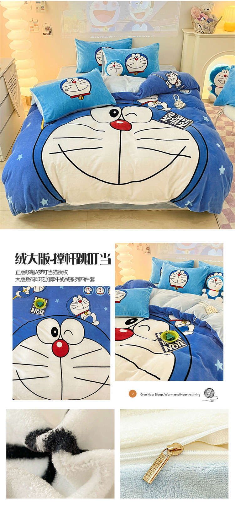 正版哆啦A梦叮当猫授权大版数码印花加厚牛奶绒系列四件套 绒大版-撑杆跳叮当