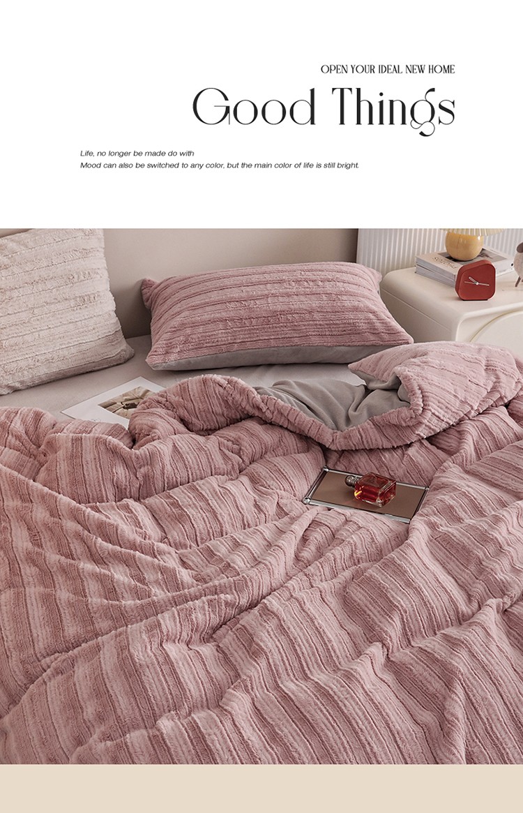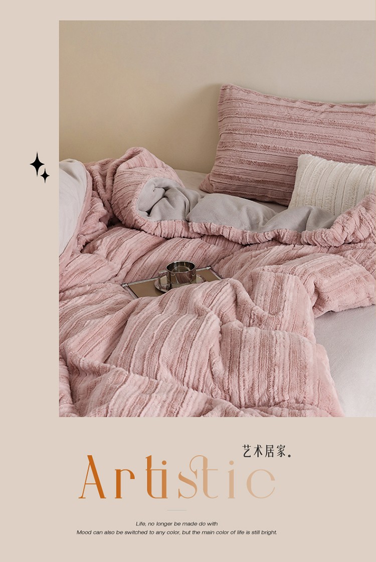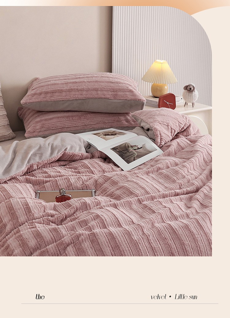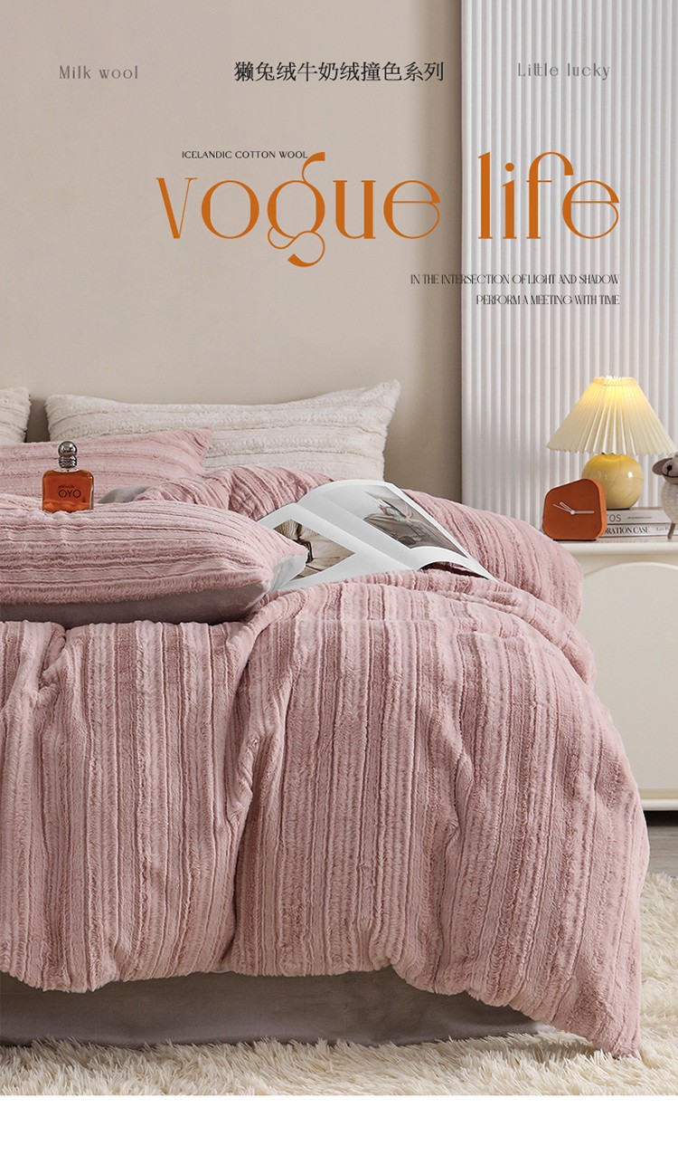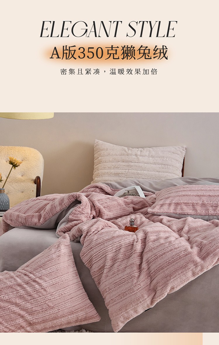 商品名称:名品优仓A版350克兔毛绒 B版230克牛奶绒四件套-洛可可 洛可可-少女粉