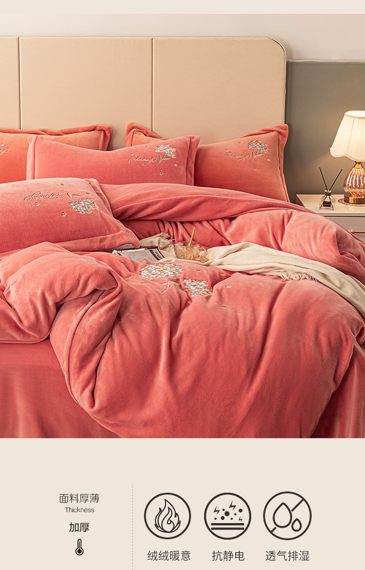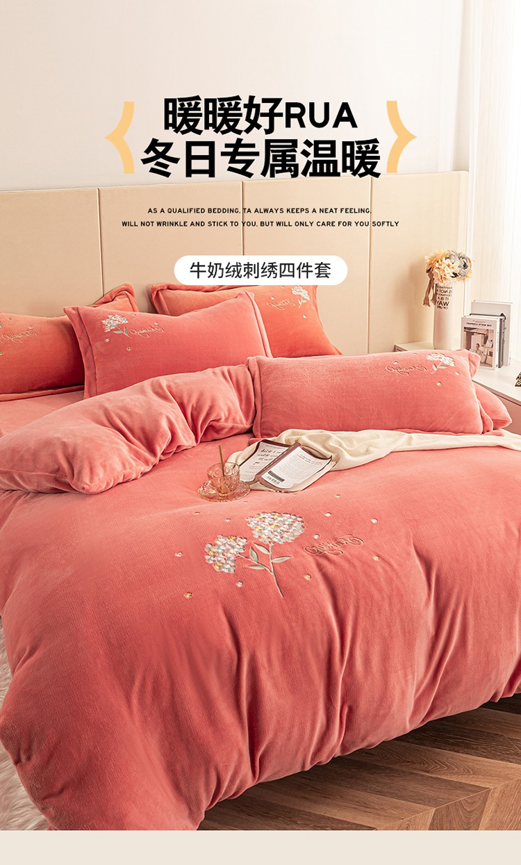 (总)名品优仓 2025新款220克牛奶绒绣花四件套-珊瑚,珊瑚-宝石蓝,珊瑚-粉色,珊瑚-姜黄,珊瑚-米杏,珊瑚-沫粉,珊瑚-杏粉