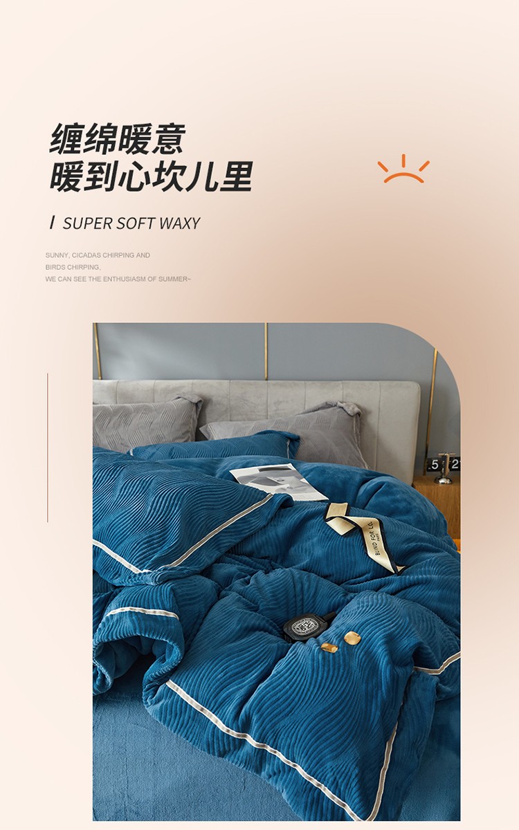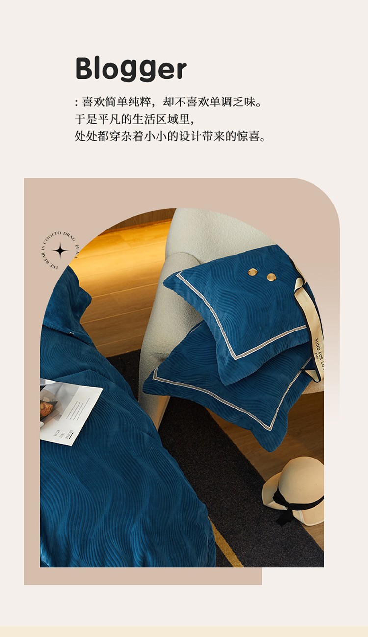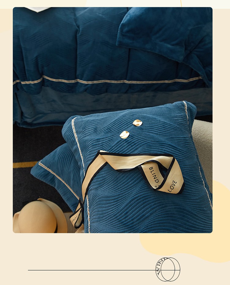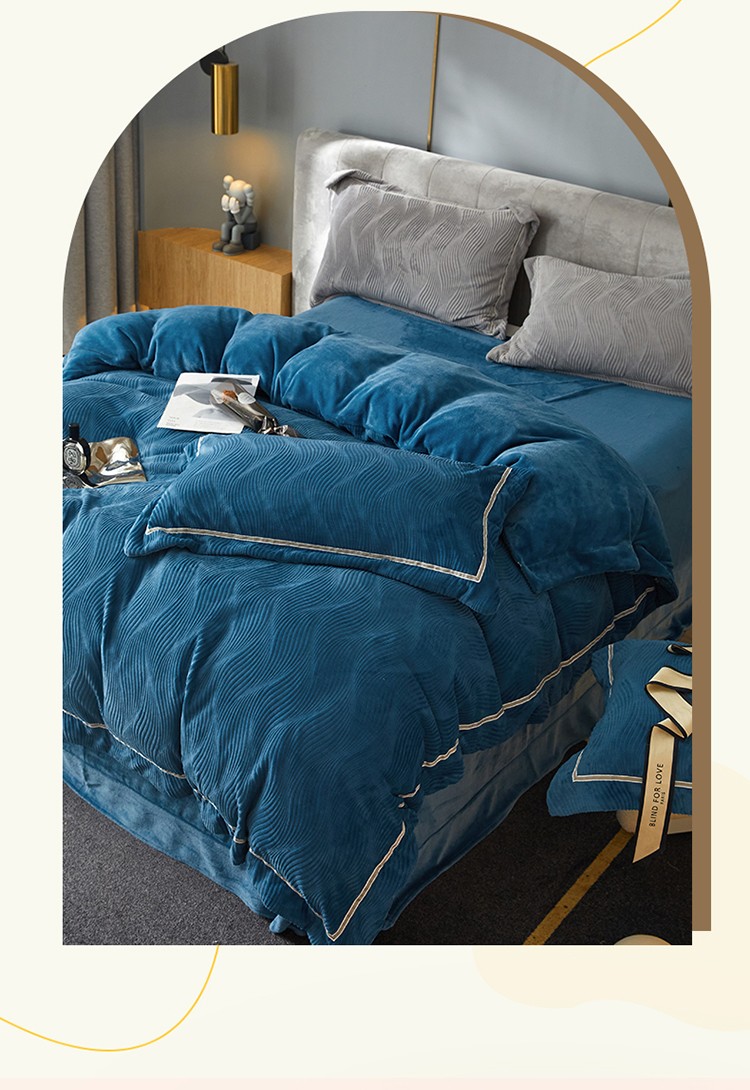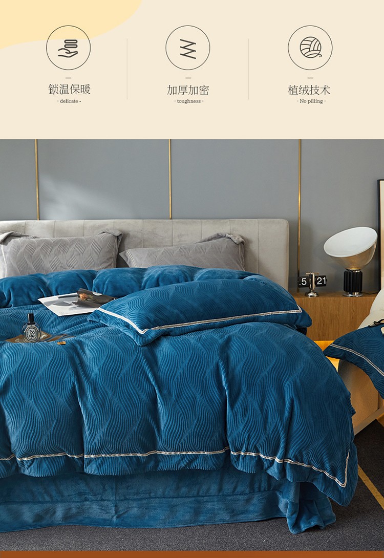 名品优仓 2022新款精美雕花牛奶绒230克四件套-玛利亚 玛利亚-宝蓝