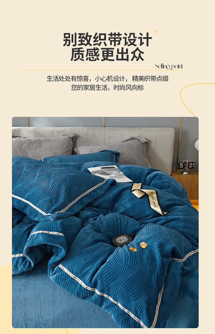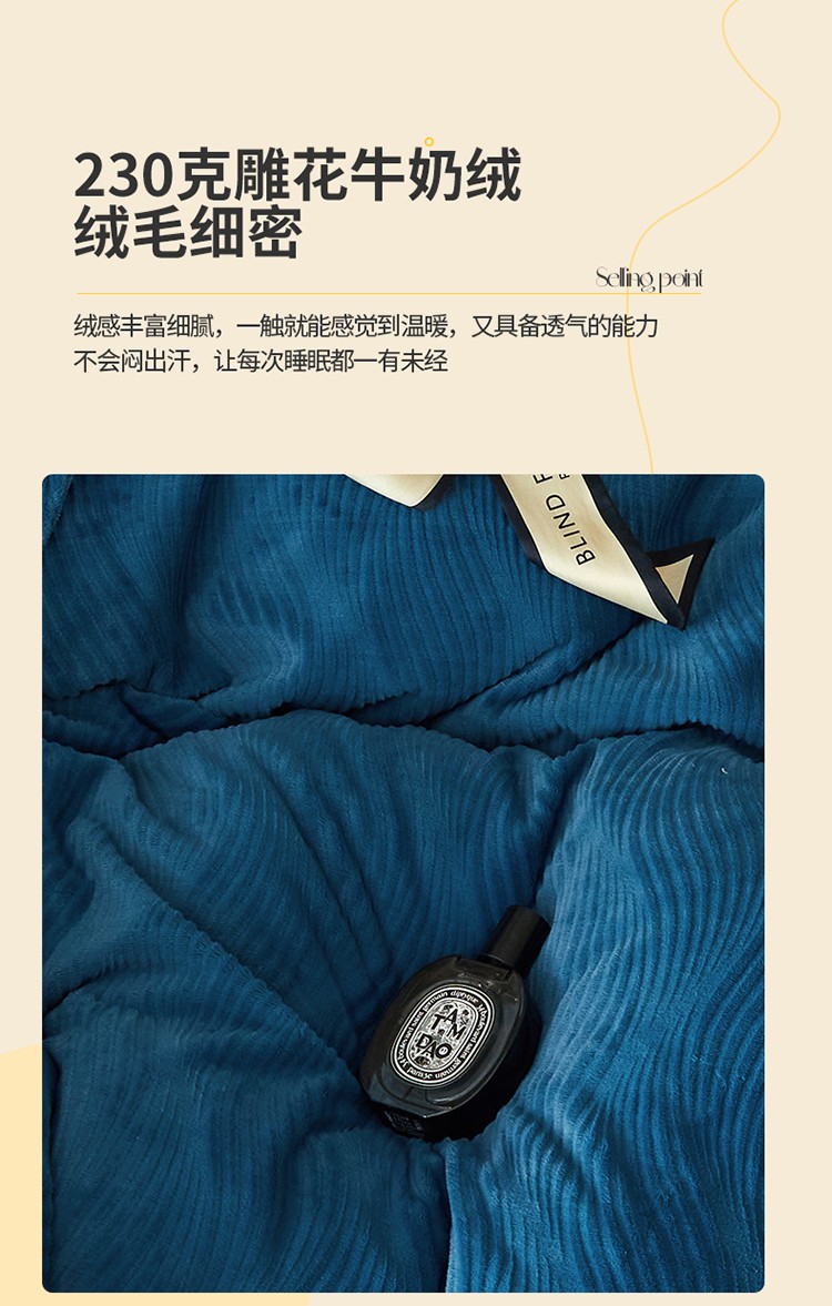 商品名称:名品优仓 2022新款精美雕花牛奶绒230克四件套-玛利亚 玛利亚-宝蓝