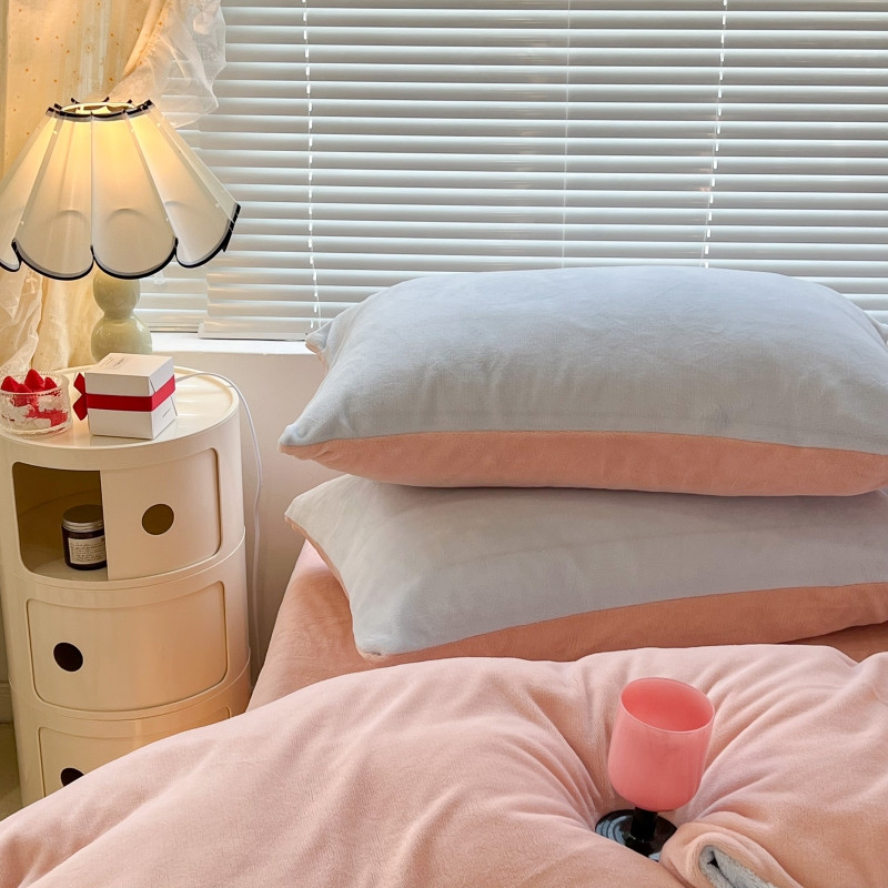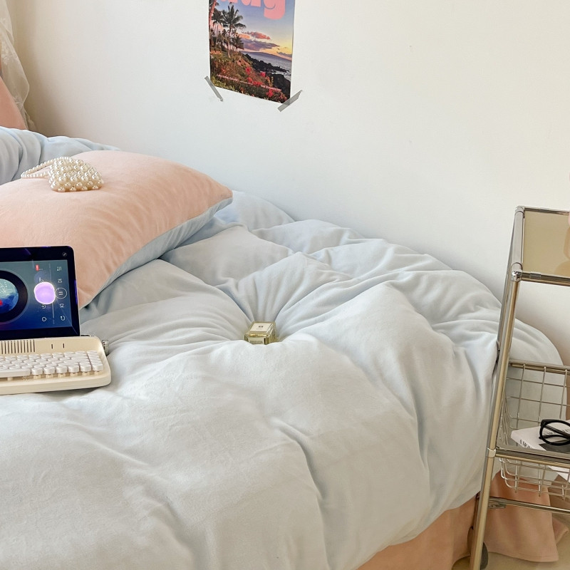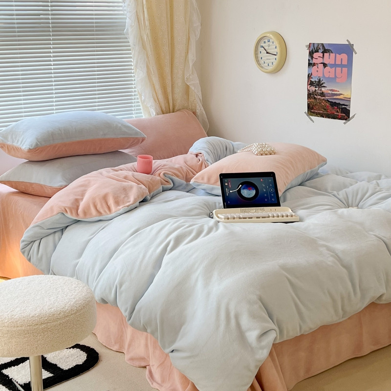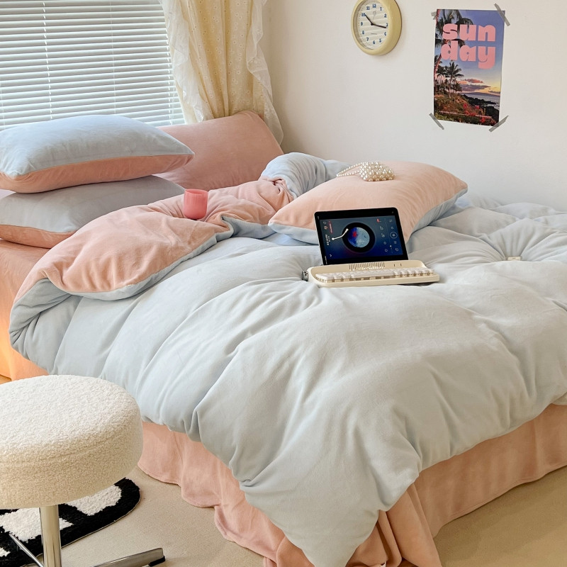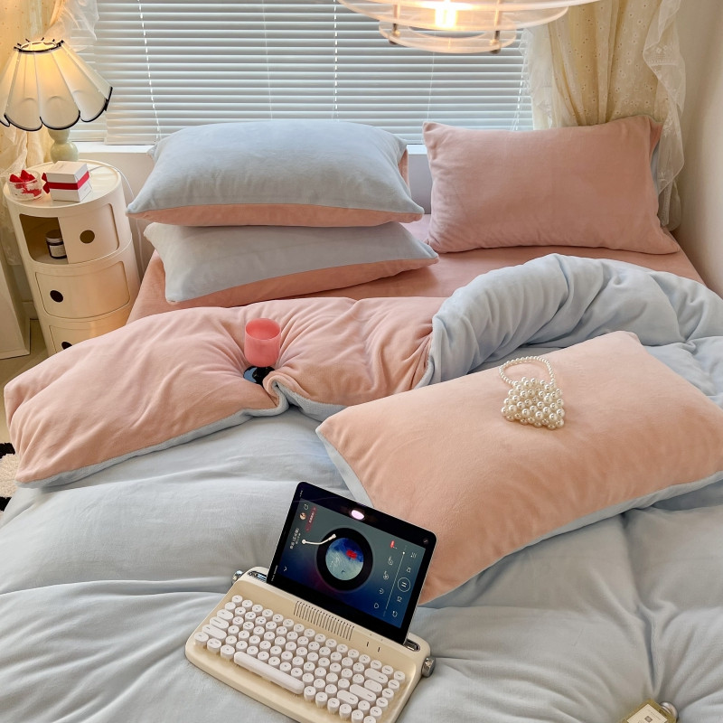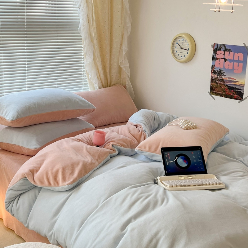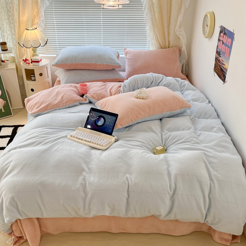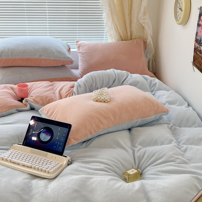 昔可 2022新款奶油双拼系列牛奶绒四件套 奶酥蓝粉