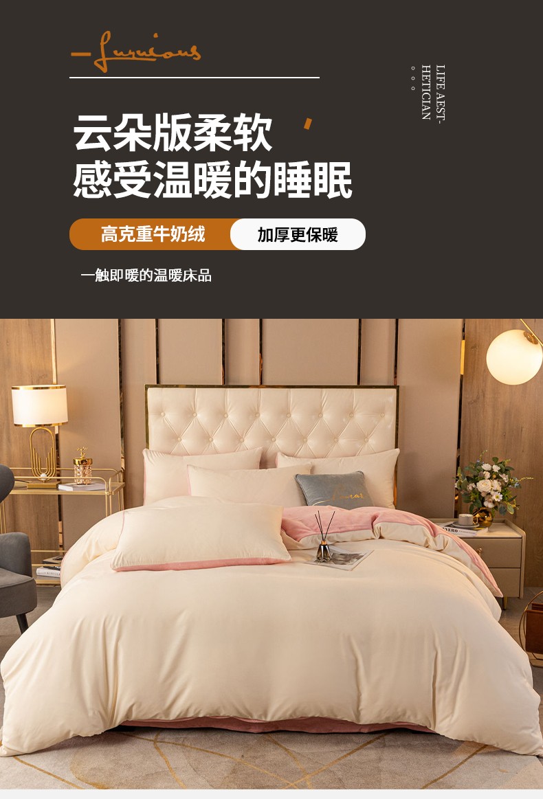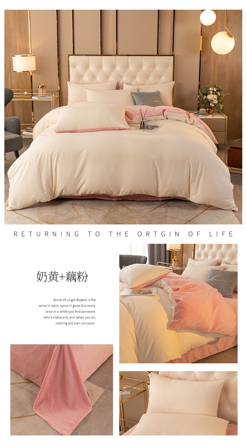 当前位置: 91家纺网 > 商品网购 > 床品套件 > 四件套 > 牛奶绒四件套 > 古吉梦高克重牛奶绒双色床单床笠款四件套 纯色棉绒-奶黄+藕粉
